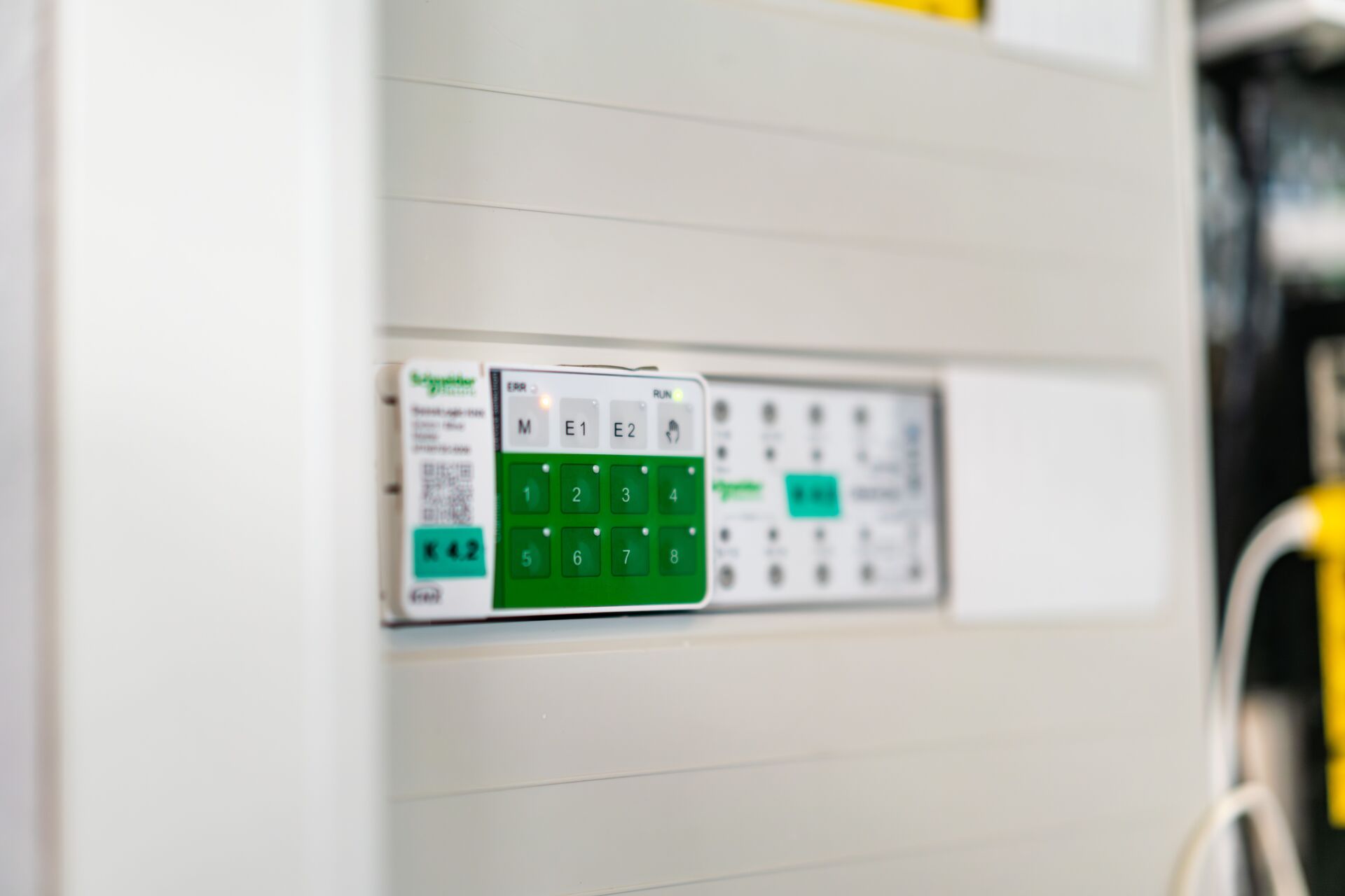 Die KNX-Topologie der neuen Gebäude ist so aufgebaut, dass in allen Wohnungen zunächst die gleiche technische Grundausstattung zum Einsatz kommt. Die hierfür benötigten Aktoren, Sensoren und Netzwerkkomponenten stammen allesamt vom Schweizer Traditionsunternehmen Feller und dessen Mutterkonzern Schneider Electric. Mit diesen grundlegenden KNX-Komponenten lassen sich Storen, Licht und Heizung komfortabel und energieeffizient steuern. Zusätzlich ist es aber auch möglich, weitere Spezialfunktionen individuell zu ergänzen, beispielweise wurde bereits ein CO2-Sensor für die Luftqualität und eine Wetterstation verbaut.