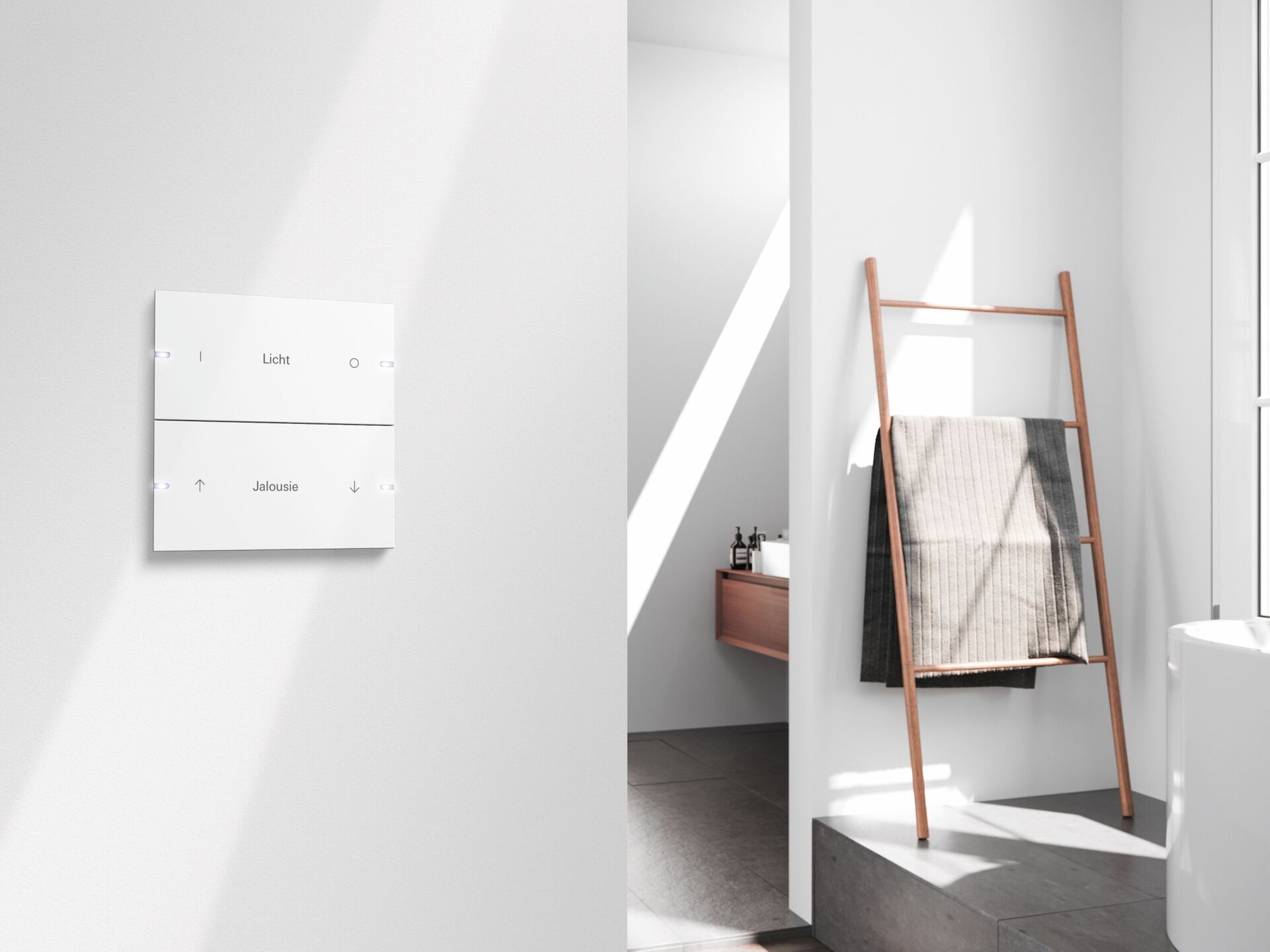 Mit einem Aussenmass von 95 × 95 Millimeter bietet der Gira Tastsensor 4 eine grosszügige Bedienfläche mit einer ebenso exzellenten wie angenehmen Haptik dank einer 3 Millimeter starken Materialauflage. Wird er betätigt, gibt er dem Nutzer ein taktiles Feedback, so dass eine Fehlbedienung nahezu ausgeschlossen ist.