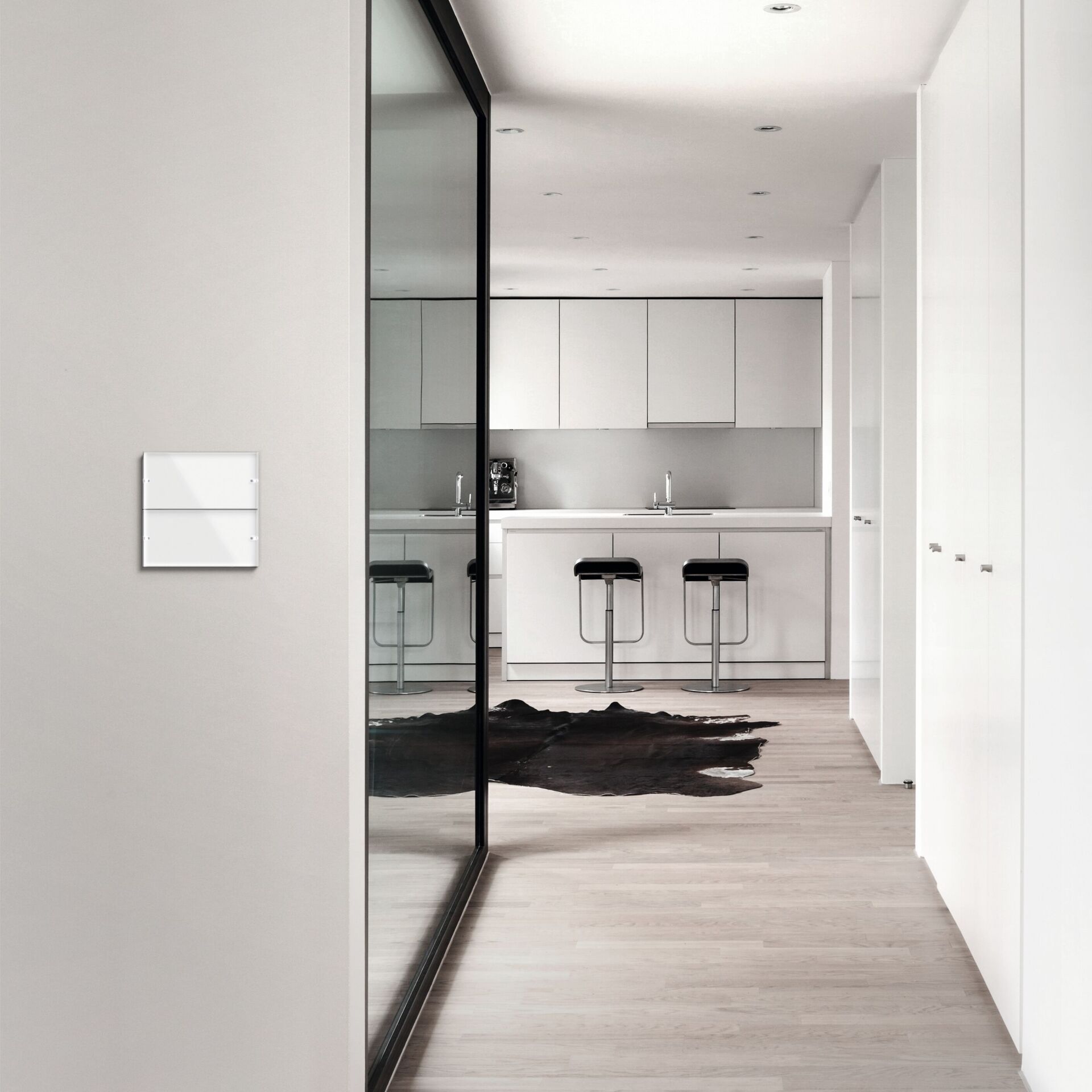 In diesen Anmutungen überzeugt der Gira Tastsensor 4 als ein cleveres KNX Bediengerät im Premiumsegment. Seine klare Fläche, die quadratische Form und die ausgesucht wertigen Materialien passen perfekt zu einer modernen und harmonischen Innenarchitektur. Wobei der Gira Tastsensor 4 sowohl edle Akzente zu setzen vermag als sich auch harmonisch ins Ambiente einfügt.