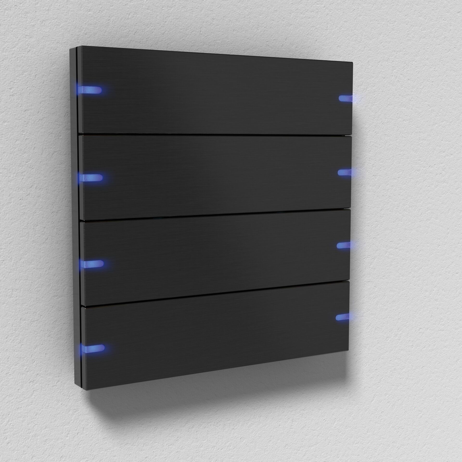 Verfügbar ist der Gira Tastsensor mit 1fach, 2fach und 4fach Wippen, die sich bei der Inbetriebnahme für Anwendungen beliebig konfigurieren lassen. Ausserdem können die Wippen über den Gira Beschriftungsservice sehr hochwertig und überdies per Laser individuell beschriftet werden.