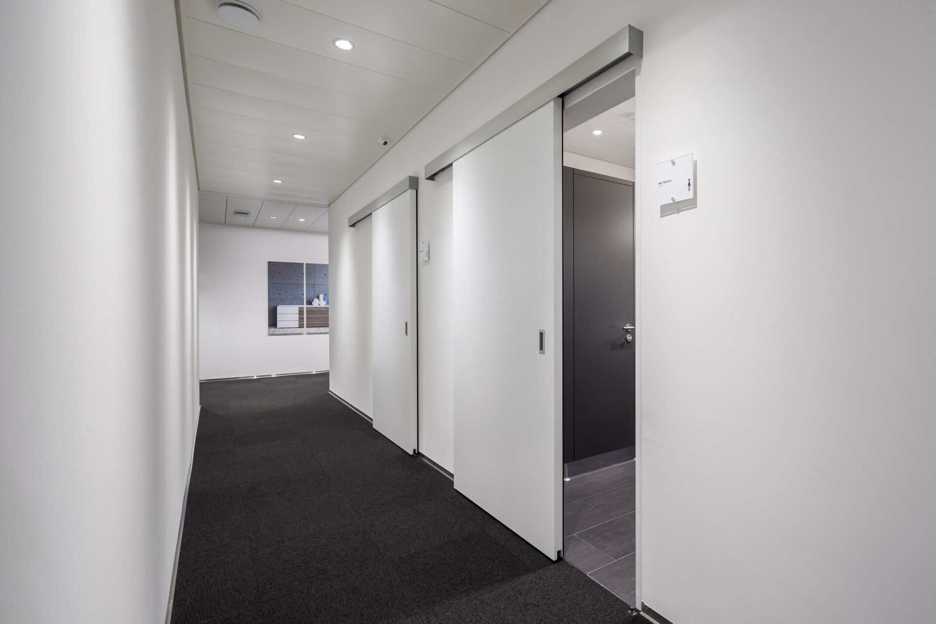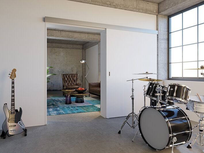 Es ist vor allem die Platzersparnis, die immer wieder fürs Schieben spricht – denn in geöffnetem Zustand stehen Türen einfach nicht im Weg. Ein akustisch wirksamer Schallschutz liess sich aber lange nicht mit platzsparendem Schieben vereinen.