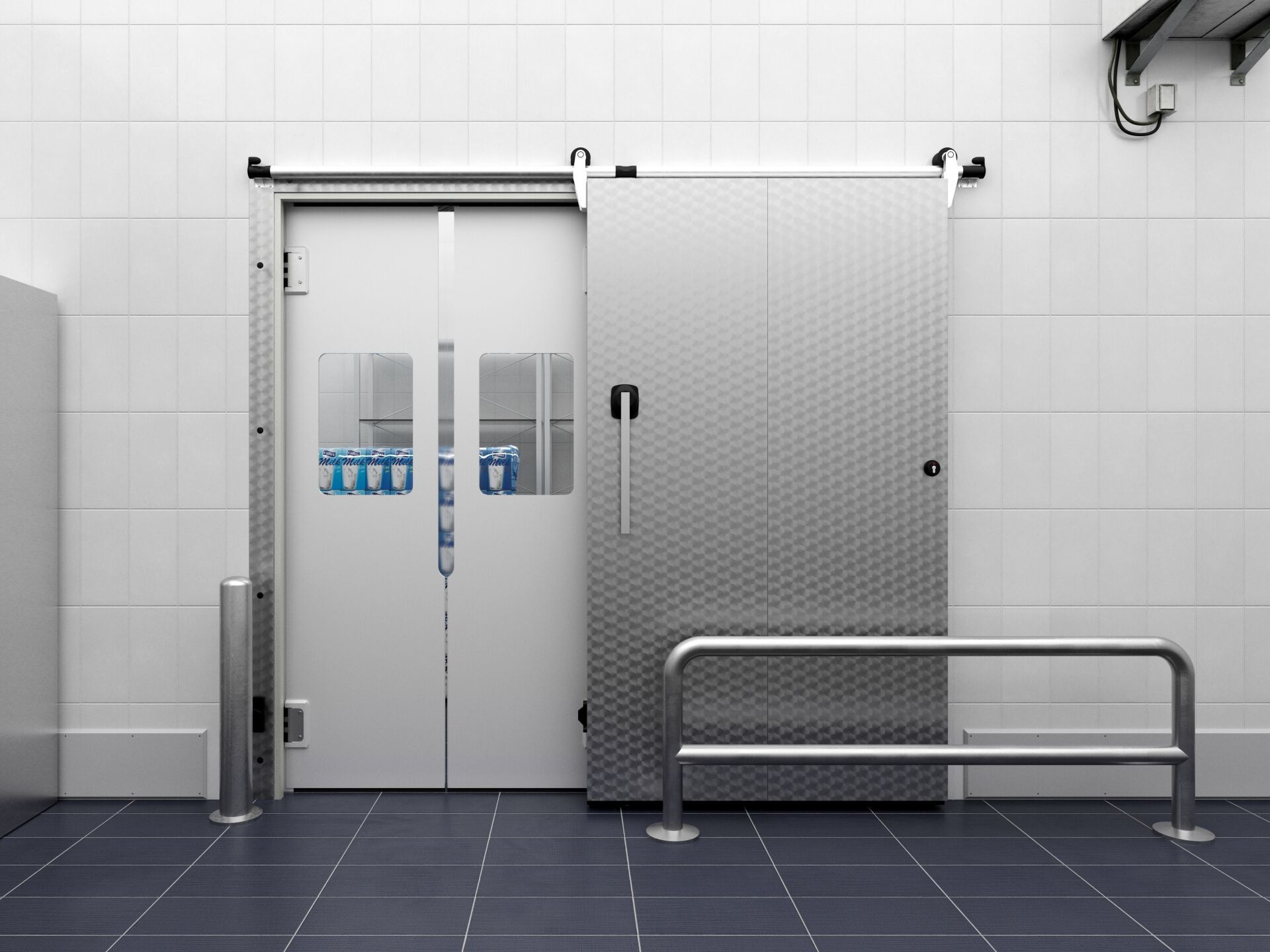 Kühlraumtüren: HID 80 (Drehflügel) und HIS 80 (Schiebetür) verfügen über ein 80 Millimeter starkes PU-Türblatt, das die Temperatur stabil hält. Die Kombination mit einer Pendeltüre ist ideal, um Energieverluste zu minimieren.