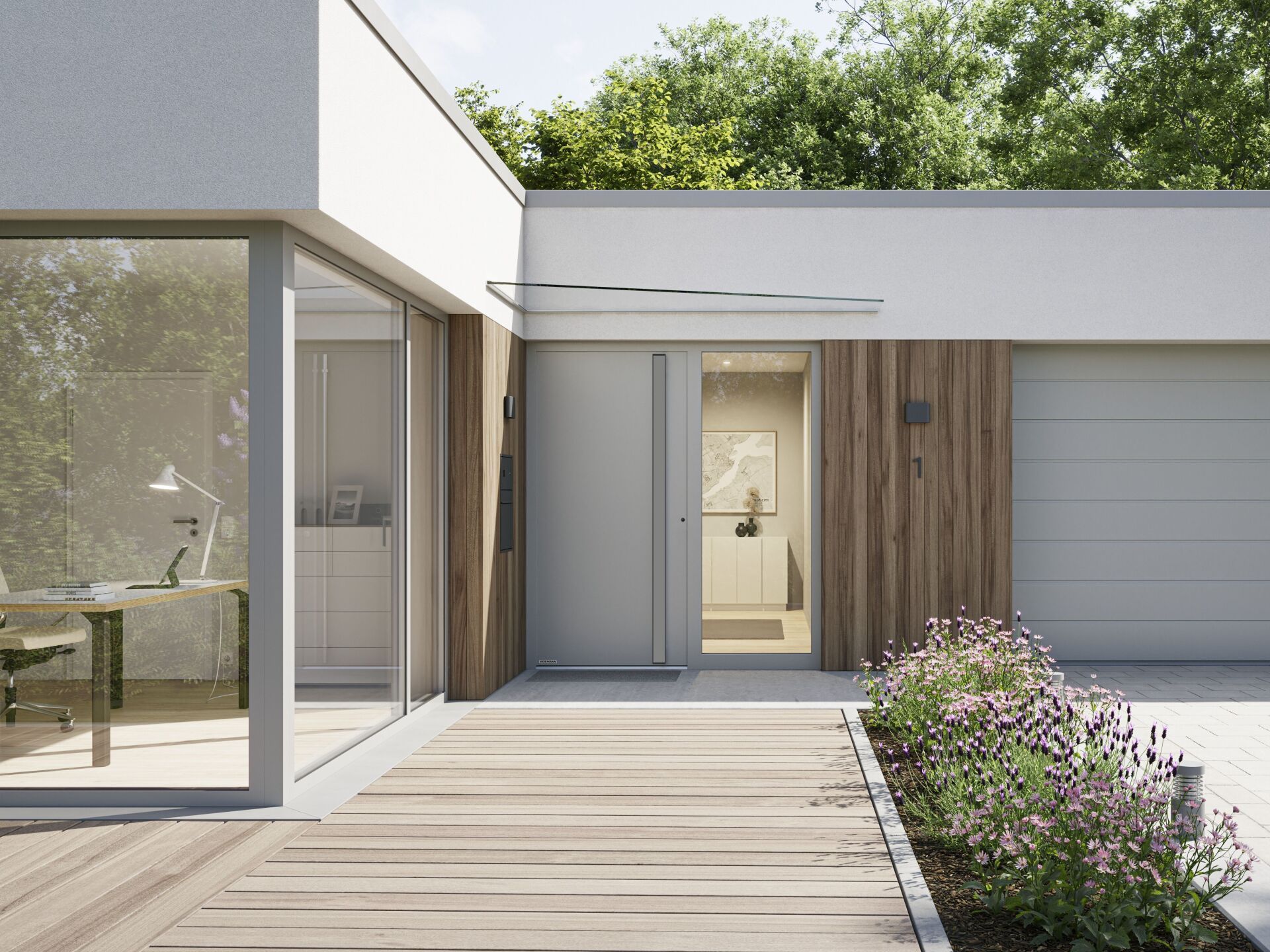 Das ProduktPortal auf der Homepage von Hörmann ermöglicht es jeder und jedem Kataloge, Zeichnungen, Zertifikate, technische Daten, Ausschreibungstexte, Videos und vieles mehr zu erkunden. Wenn noch weitere Ideen oder Lösungen gesucht werden, helfen unsere Architektenberater – auch vor Ort – jederzeit gerne weiter.Wird eine Türanlage im Konfigurator zusammengestellt, erhält man direkt eine fotorealistische Darstellung. So können sich Kund*innen das Element sehr gut vorstellen und nach ihren Wünschen weiter konfigurieren.
