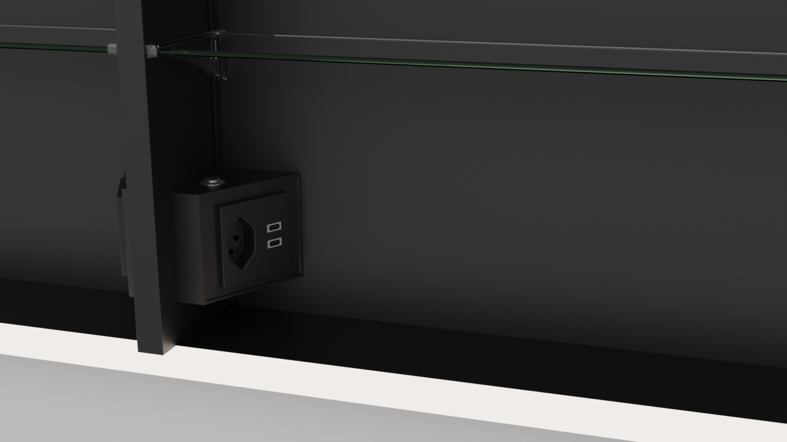Neben dem Design überzeugt der Spiegelschrank Auralis auch durch praxisorientierte Details. Integrierte Steckdosen mit USB-C-Anschlüssen ermöglichen das komfortable Laden moderner Geräte direkt im Spiegelschrank und tragen damit den Anforderungen eines zunehmend digitalisierten Alltags Rechnung.Die durchdachte Innenorganisation sorgt für Ordnung und Über-sicht im täglichen Gebrauch. Damit verbindet der Spiegelschrank ästhetische Gestaltung mit praktischer Alltagstauglichkeit.