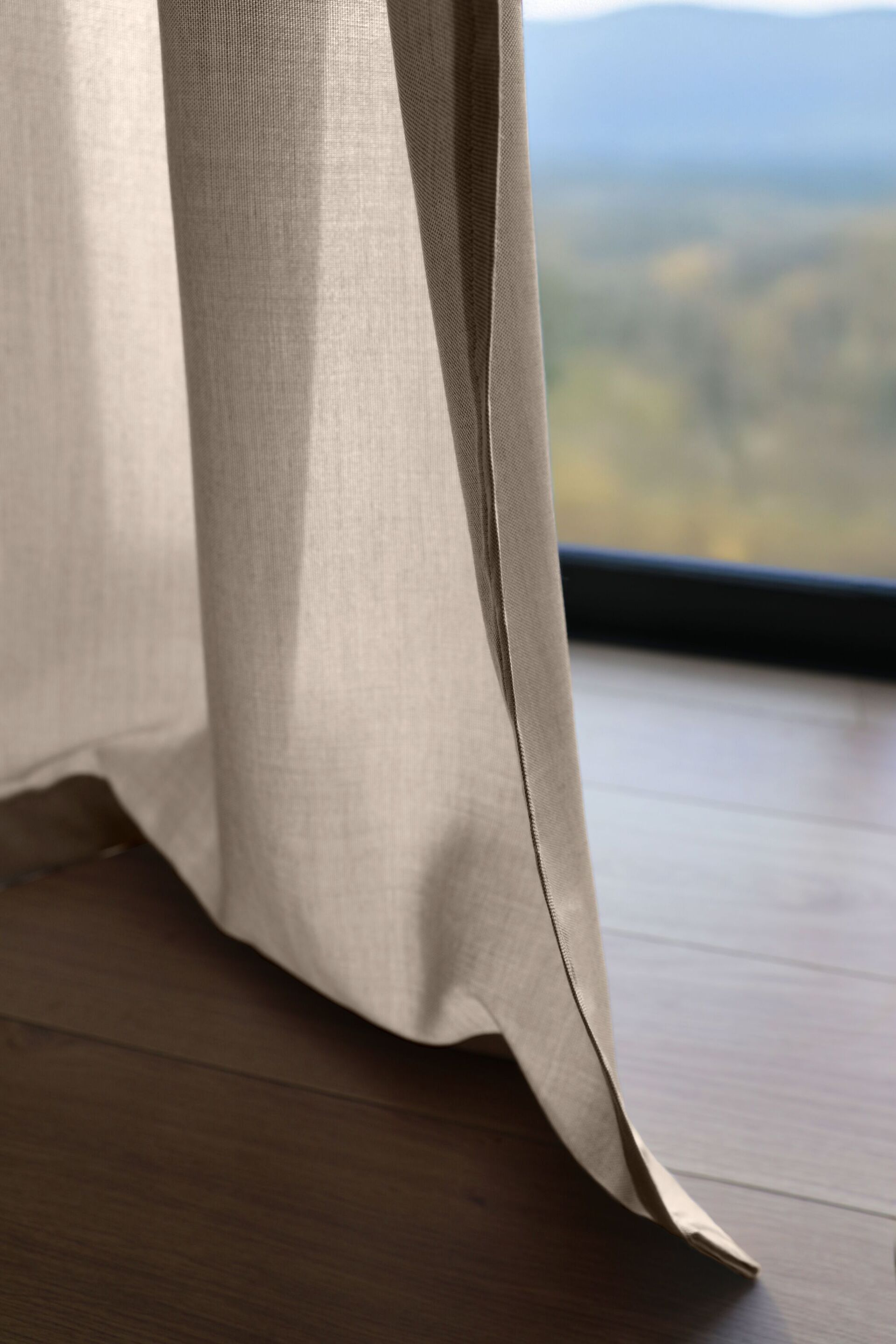 Gefertigt aus 100 Prozent spinndüsengefärbtem Polyacryl, behalten die Stoffe ihre Farbintensität über Jahre. Bei diesem Verfahren dringt die Farbe bis in den Kern der Faser ein, wodurch eine besonders hohe Farbbeständigkeit erreicht wird. Die verwendete Technologie reduziert zudem den Wasserverbrauch während der Produktion. Die Stoffe sind PFAS-frei ausgerüstet, bleiben wasser- und schmutzabweisend, weich und strapazierfähig. Der Hersteller Sunbrella gewährt fünf Jahre Garantie gegen Farbverlust, Schimmelbildung, Abrieb und Pilling. Produziert werden die Vorhangstoffe im Norden Frankreichs. Dadurch werden kurze Transportwege, hohe Fertigungsstandards und eine nachhaltige Herstellung gewährleistet.