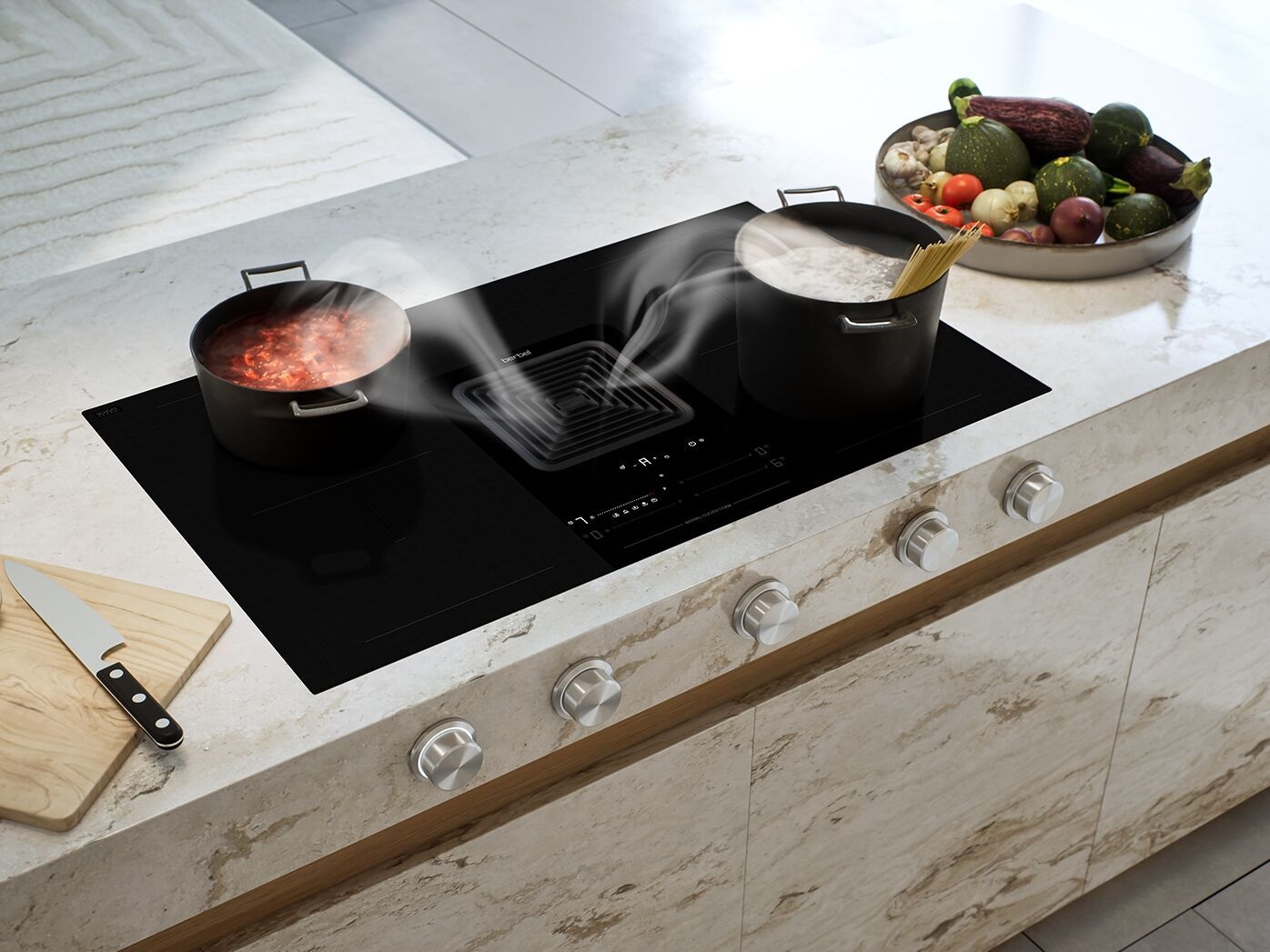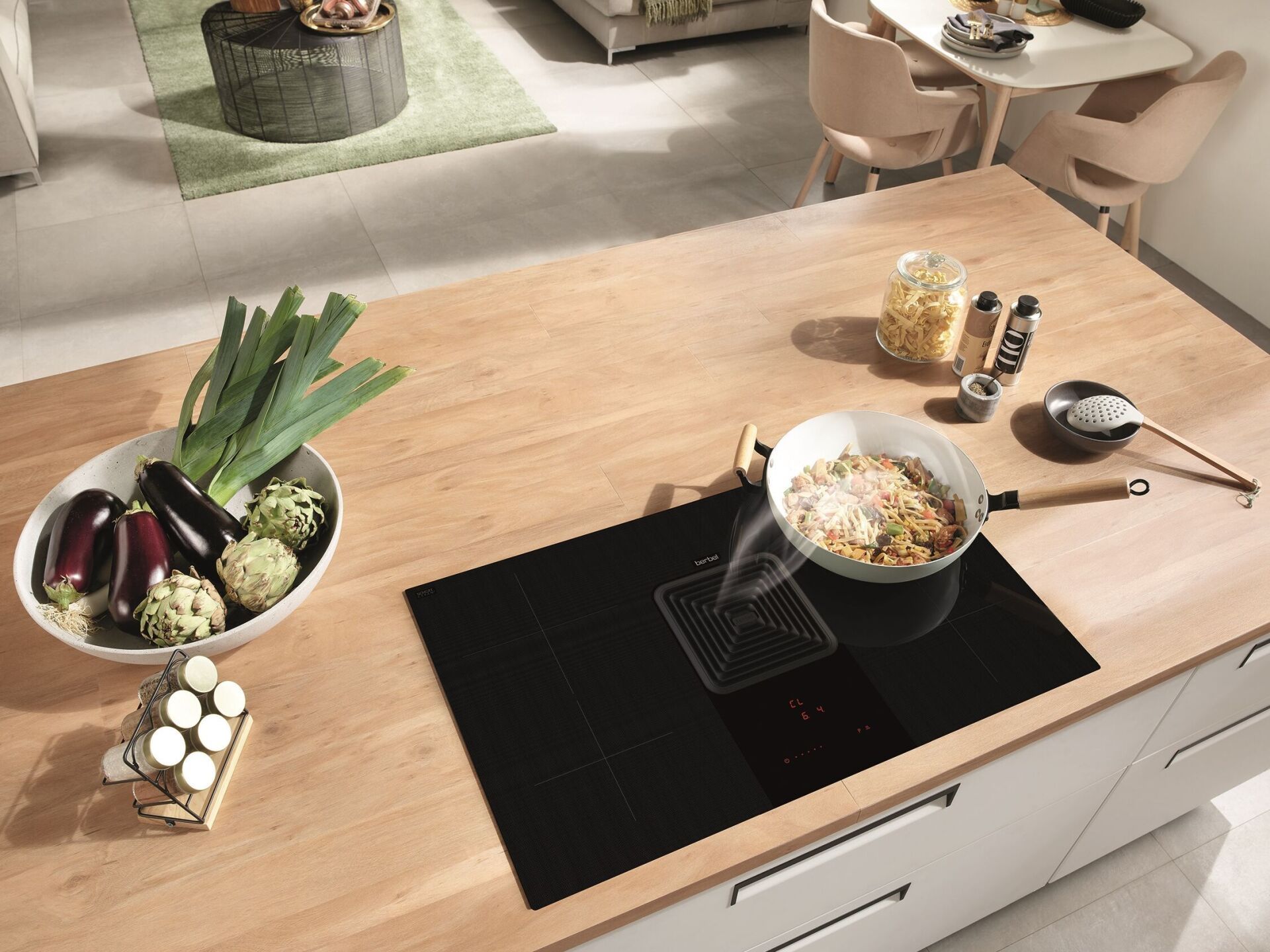 Der optimierte Vertical Flow-Effekt führt Kochdünste spiralförmig und effizient zum Ansaugpunkt. In Kombination mit dem berbel Prinzip erfolgt die Fettabscheidung ohne Filter – für eine hohe Erfassungseffizienz und einfache Reinigung. Die neuste Induktionstechnologie ermöglicht zudem die fünf Clever Cook-Funktionen: Wasserkochen, Dämpfen, Temperaturhalten, Pastakochen und Braten.