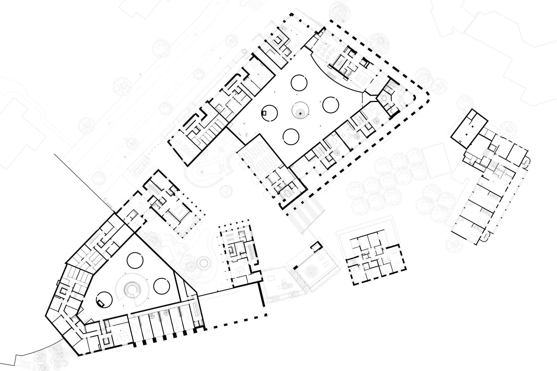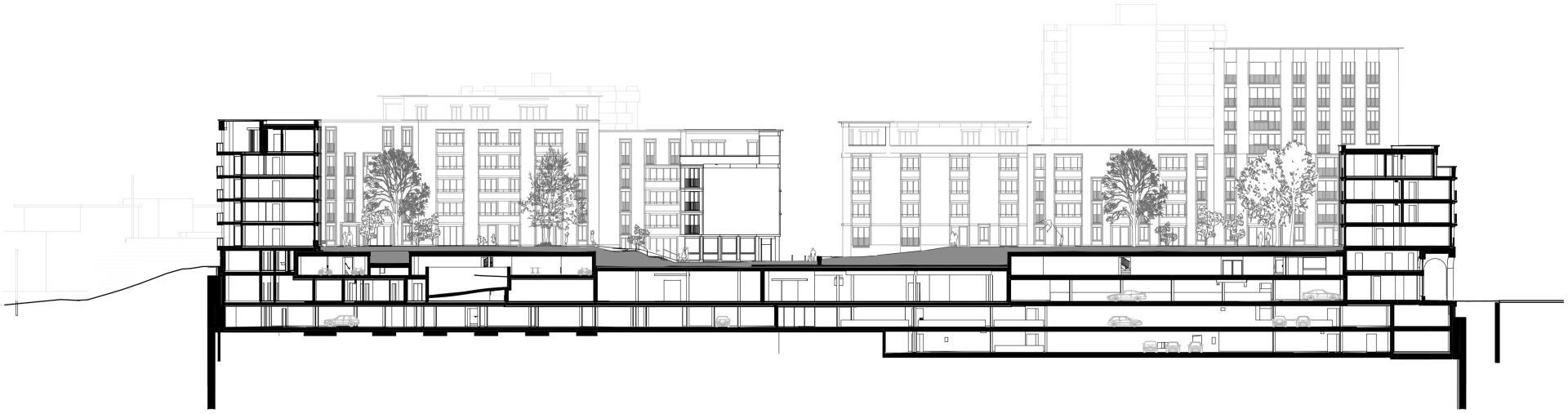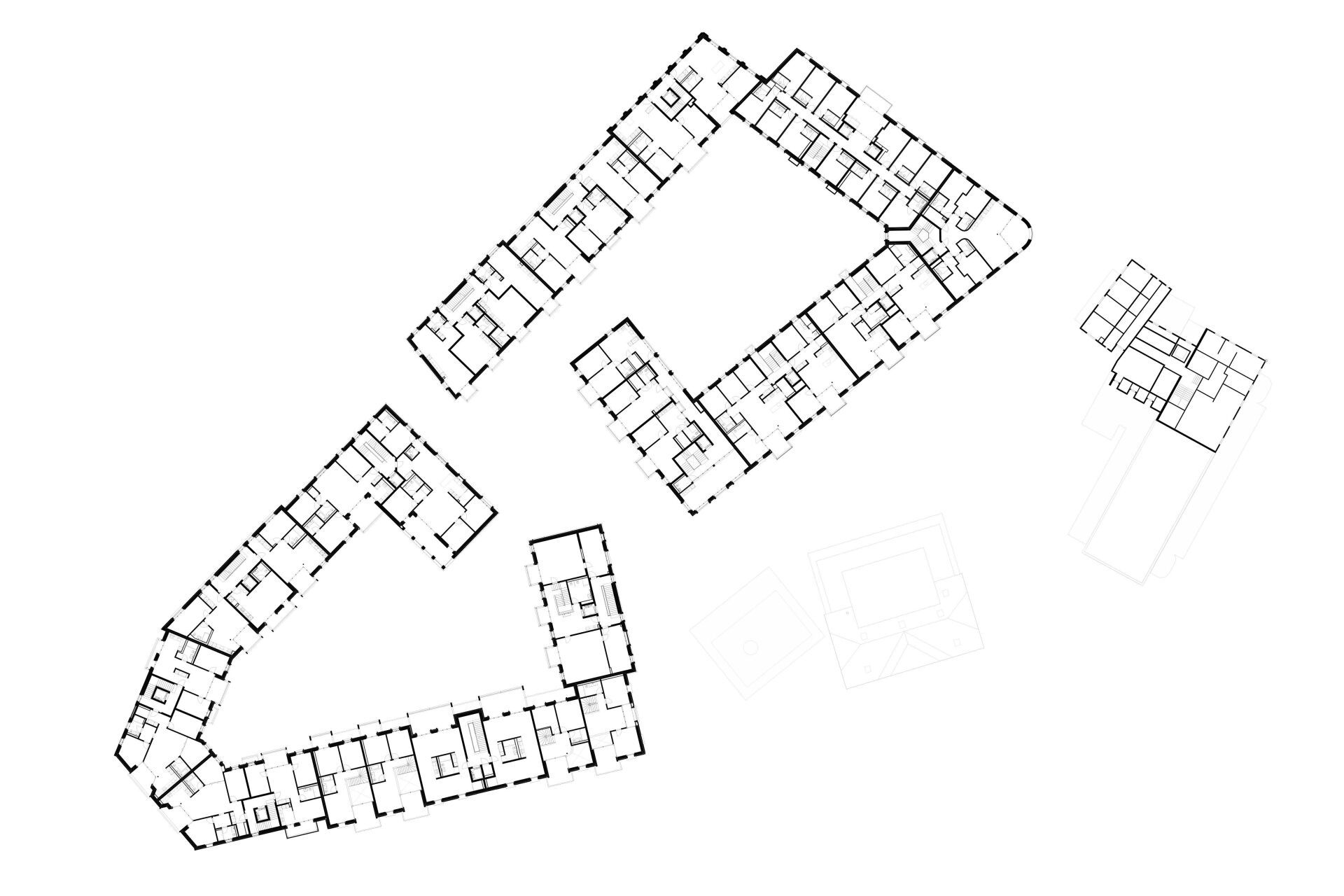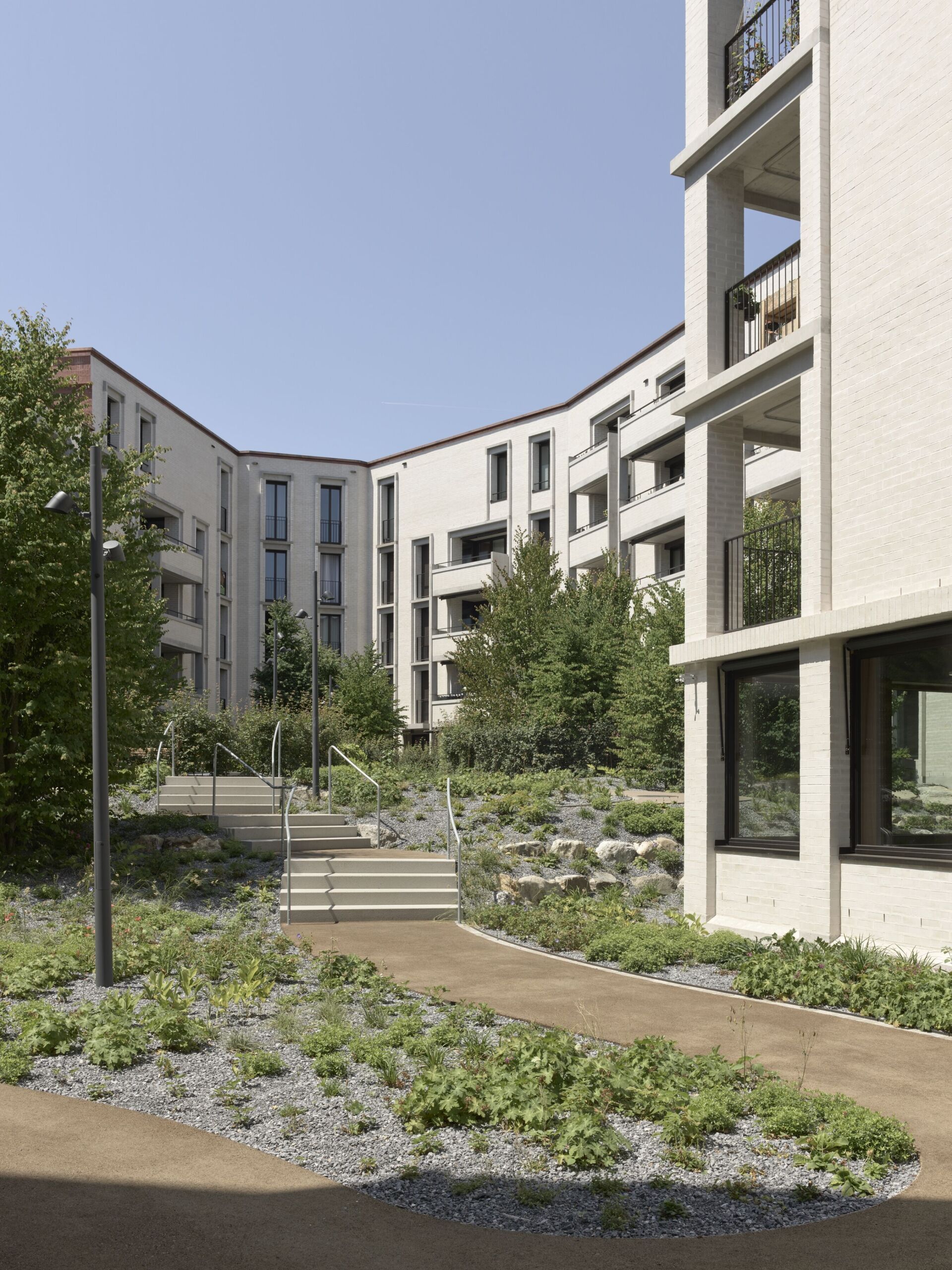 Den vielleicht von Lampugnanis Richti-Areal und der Zürcher Kalkbreiteüberbauung von Müller Sigrist Architekten inspirierte städtebauliche Entwurf, der sich als Antithese zu den typischen, aus Zeilenbauten oder Punkthäusern bestehenden Schweizer Wohnsiedlungen erwies, wurde daraufhin von AMA weiterbearbeitet. Es realisierte zwei grosse Blockrandbauten, bestehend aus insgesamt 14 Flachdachhäusern unterschiedlicher Höhe mit eigenen Eingängen sowie unverwechselbaren Aussen- und Hoffassaden, die es den Bewohnenden leicht machen, sich mit den jeweiligen Häusern zu identifizieren. Wie von Helsinkizurich vorgeschlagen, teilte AMA den Aussenraum auf in zwei halbprivate Innenhöfe, die über ein Foyer erschlossen werden, und in den tieferliegenden Chäsiplatz, der sich zwischen den Altbauten und den Arkaden des östlichen Neubaus ausdehnt.