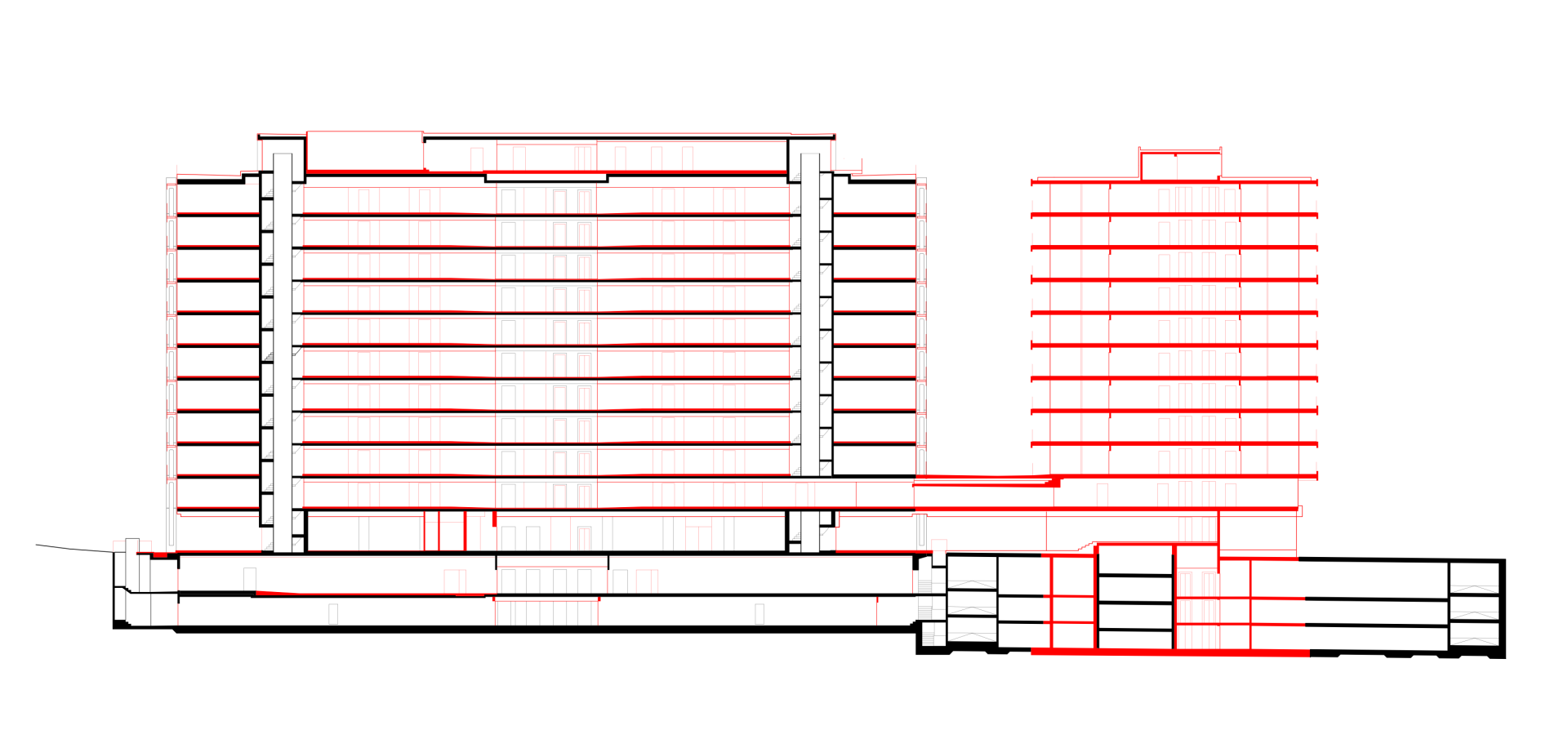 Schnitt mit Bestands- und geplantem Erweiterungsbau | Plan: Brauen Wälchli Architectes