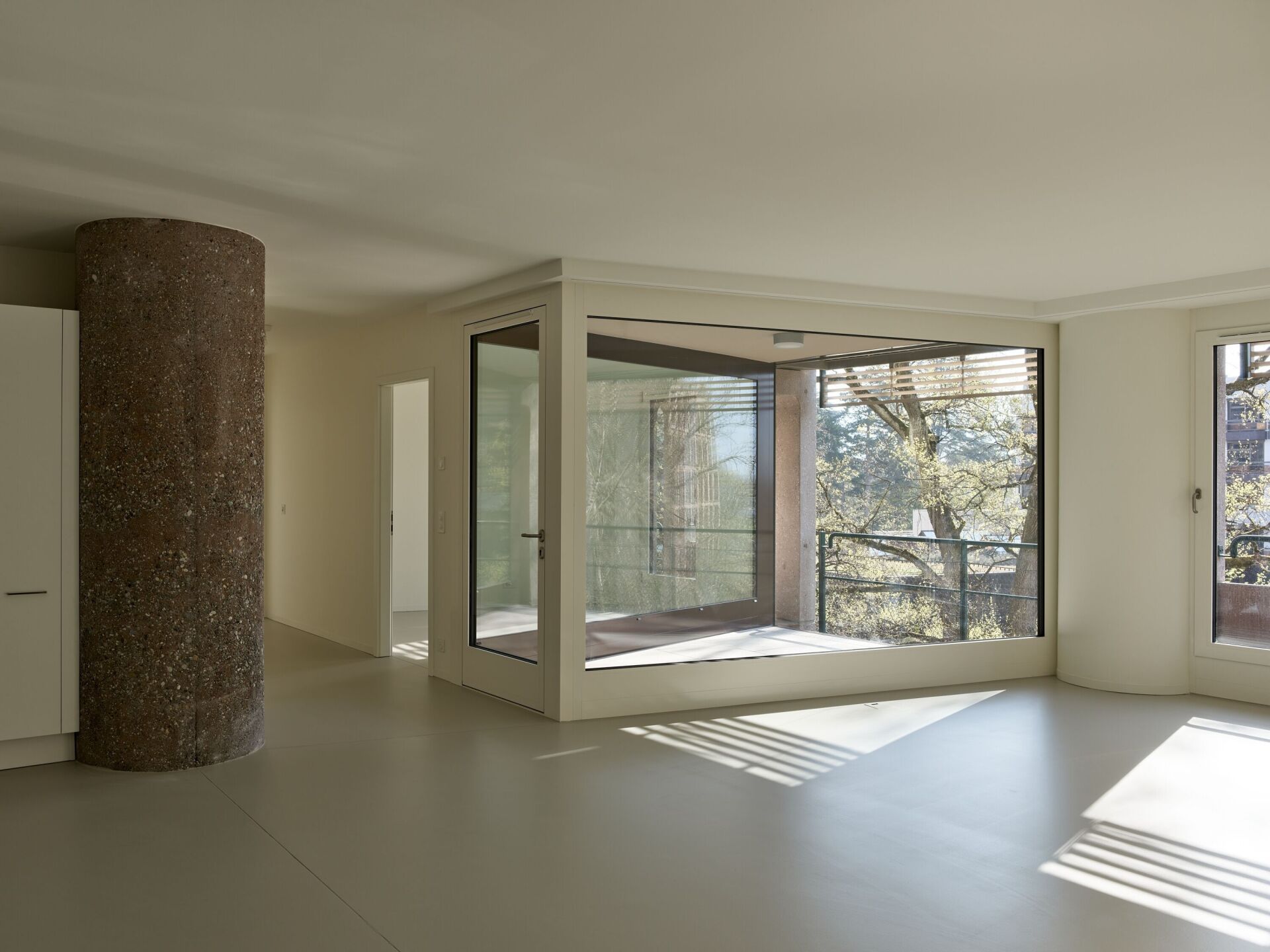 Die Waschbetonpfeiler sind in den Wohnungen sichtbar. | Foto: Ariel Huber