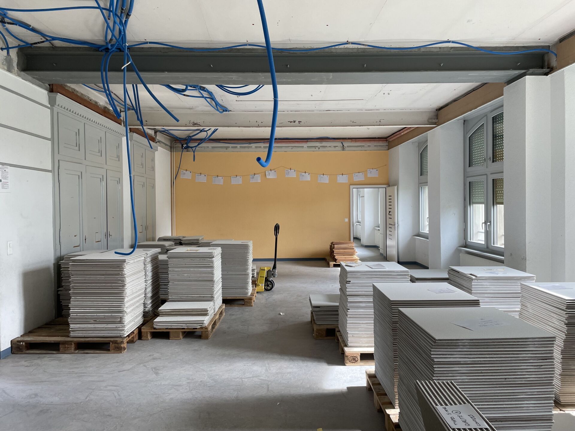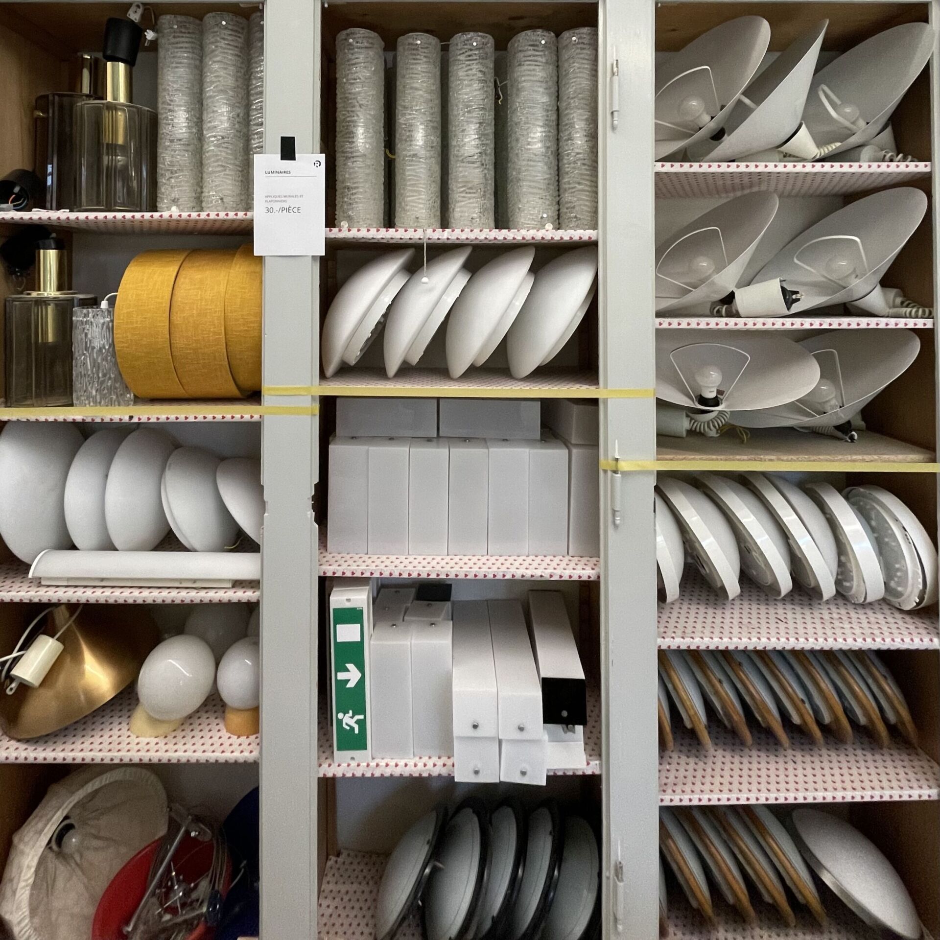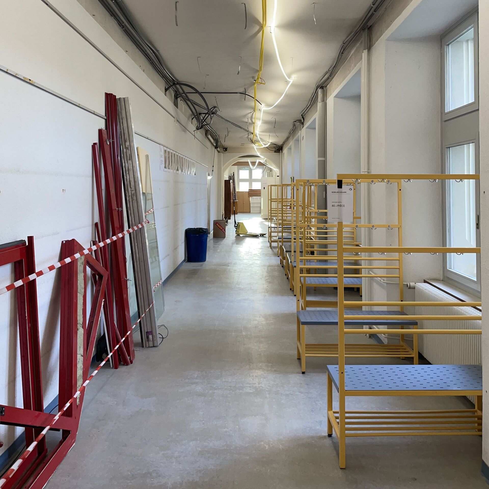 Genau dieses Prinzip war die Leitlinie für die Kernsanierung des Collège du Sacré-Cœur in Estavayer-le-Lac. Am 9. November 2024 organisierte das Team der Ressourcerie einen Vor-Ort-Verkauf in der ehemaligen Schule, in Zusammenarbeit mit den Architekt*innen des Studios WOW, die für das Transformationsprojekt verantwortlich sind. Ziel war es, sichtbar zu machen, was gerettet werden konnte. Einige Räume im Erdgeschoss wurden in thematische Ausstellungen verwandelt: Kabel und Beleuchtung hier, Holzverkleidungen dort, Dämmung, Fenster, gemischte Objekte verteilt auf andere Trakte – eine materielle Kartografie des Gebäudes, Raum für Raum, Stück für Stück. Die meisten Besucher*innen kannten die Schule, hatten dort gelernt, unterrichtet oder waren in der Nähe aufgewachsen. Man zeigte ihnen konkret, was in einer Schule steckt: Hunderte nützlicher und funktionsfähiger Materialien und Gegenstände. Solche Sensibilisierungs- und Einbindungsprojekte sind für La Ressourcerie grundlegend, weil sie bei den Menschen Emotionen wecken und diese erkennen, dass ein Gebäude, selbst wenn es abgerissen wird, noch viel zu geben hat.
