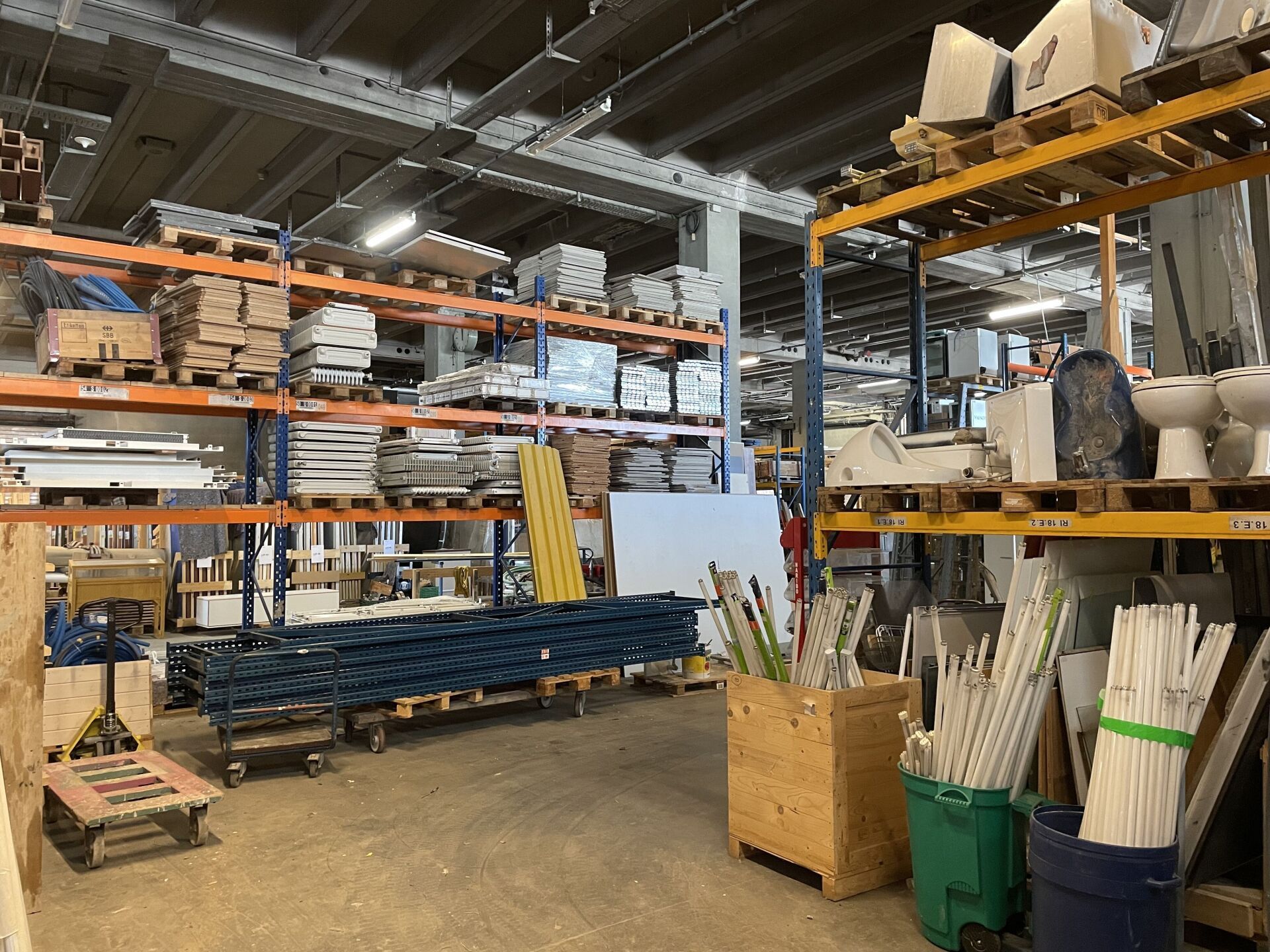 Der zweite Schwerpunkt ist die Lagerung, oft «Magazin» genannt, was irreführend ist, da es sich nicht um ein Geschäft im klassischen Sinne handelt. Lagerung ist eine zwangsläufige physische Folge vom Abbauen der Materialien und muss gut koordiniert werden. Ohne Abbau keine Re-Use-Materialien, ohne Kompetenz keine Qualität im Lager – beides ist untrennbar miteinander verbunden.