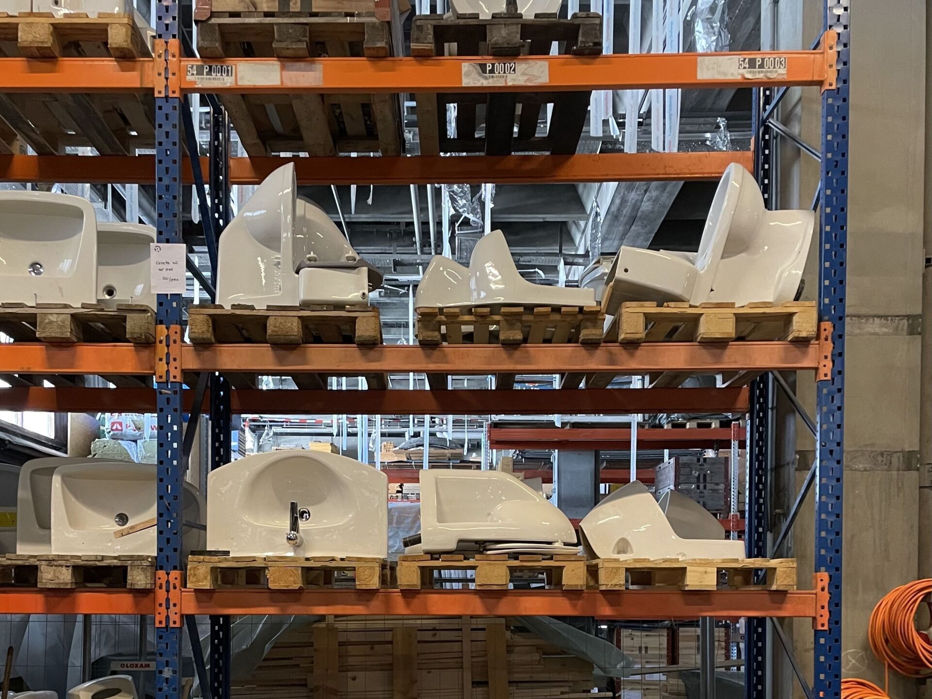 Durch Oberlichter fällt Licht in die Halle. Der Blick streift über aufgereihte Türen, gestapelte Heizkörper, verblichene Sanitärkeramik und gebrauchte, aber sorgfältig sortierte und aufgeschichtete Bretter. Alles ist da, verfügbar, aber provisorisch. Die Atmosphäre ist ruhig, schwebend, beinahe feierlich. Es wirkt, als würden die Materialien leben, aber ihren Atem anhalten. Sie erscheinen wie Charaktere in Wartestellung, die neue Geschichten erleben wollen. Hier ist nichts neu und doch hat alles einen Wert.