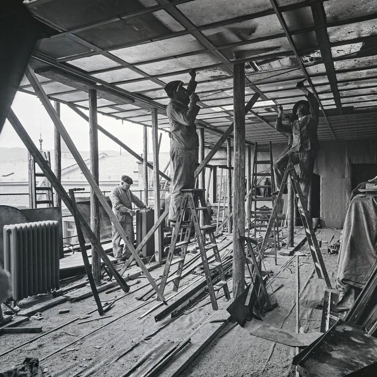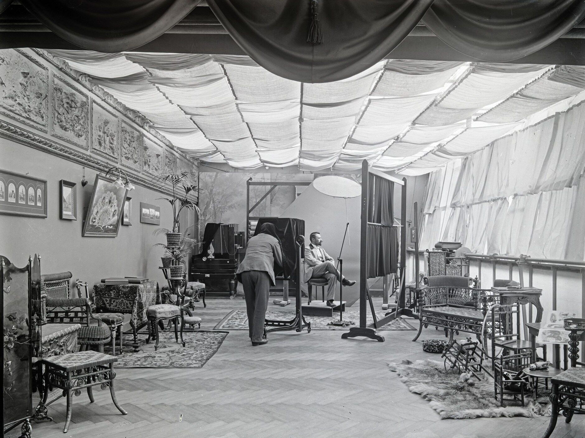 Dabei wird das Publikum mit auf eine Zeitreise durch Zürich genommen. Und es lernt bekannte Studios der damaligen Zeit kennen: Darunter dasjenige der Familie Schucht, gegründet hatten es Emilie Schucht-Planert und Bruno Eduard Schucht, die beide eine fotografische Ausbildung hatten. Zu sehen sind auch Bilder aus dem Studio Meiner, das neben Gruppenbildern und Porträtaufnahmen auch für den Handel, die Industrie, das Gewerbe und die Werbung tätig gewesen war. Zudem liess Johannes Meiner sein Atelier auf dem Dach des Metropol-Hauses an der Börsenstrasse 1911 modernisieren – und dokumentierte die Arbeiten gleich noch mit der Kamera.