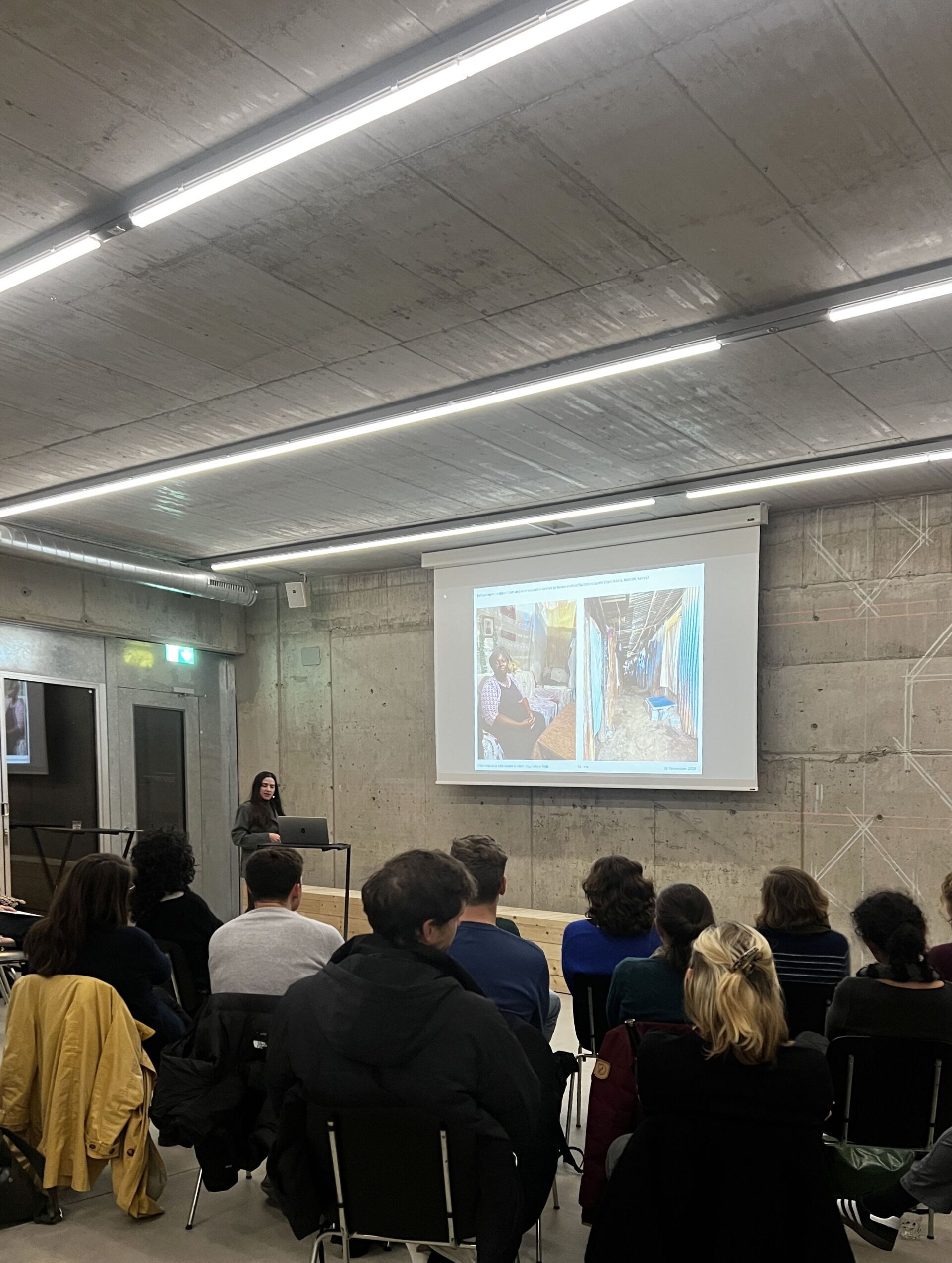 Gegen Ende des Vortrags öffnete Fabienne Hoelzel den Blick auf weitere Konflikt- und Krisenkontexte. Am Beispiel von Gaza zeigte sie, wie sich städtebauliche Werkzeuge auch für Schadensanalysen und Wiederaufbaustrategien einsetzen lassen. Die Folien kontrastierten grossmassstäbliche Zerstörung mit möglichen räumlichen Ansätzen, die auf Reparatur, Selbstorganisation und langfristige Resilienz zielen. Dieser Ausblick machte deutlich, wie breit ihr planerisches Instrumentarium gefasst ist – und wie stark es auf strukturelle Gerechtigkeit ausgerichtet bleibt.
