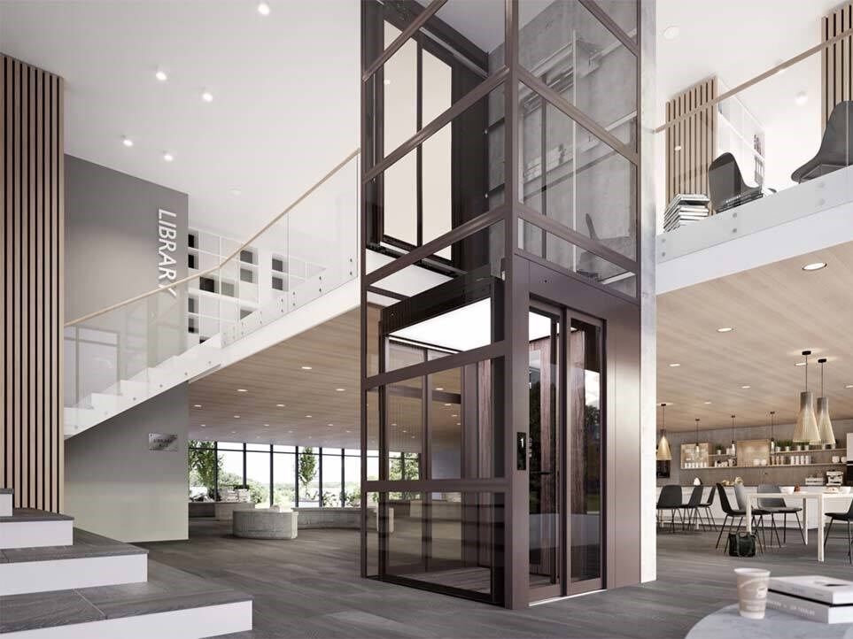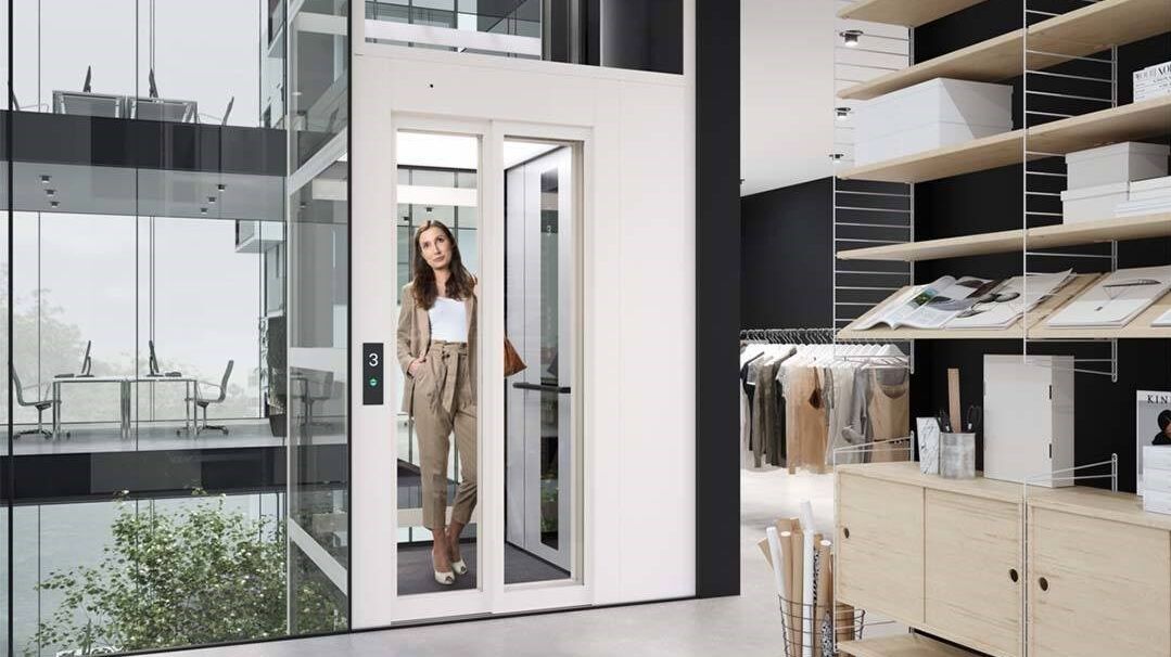 Der Senkrechtlift Kalea C1 Futura mit Kabine kommt praktisch ohne Unterfahrt aus, für eine barrierefreie Einfahrt ist eine Vertiefung von lediglich 10 cm notwendig. Auch die Überfahrt ist mit 250 cm minimal. Der Lift ist deshalb ideal für den nachträglichen Einbau in öffentlichen Gebäuden, in Bürohäusern, Mehrfamilienhäusern und Einfamilienhäusern geeignet. Die Kosten für Energie und Wartung sind gering. Der Kabinenaufzug Kalea C1 Futura wird in einem durch Meier + Co. gelieferten Liftschacht aus Stahl- oder Glaspaneelen eingebaut. Auch die Installation in einen bauseitigen Liftschacht ist möglich. Der Kalea C1 Futura kann über 2 – 6 Etagen installiert werden, und das Erscheinungsbild entspricht äusserlich dem eines herkömmlichen Aufzuges.
