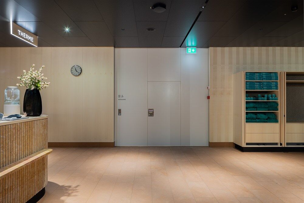 Normkonforme Lösungen wie beispielsweise Stahl-Schiebetore mit Gehtür inklusive Muschelgriff nach EN 179 definieren den Stand der Technik neu. Alle Brandschutztore aus Stahl sind endgefertigt, in allen RAL-ähnlichen Farben, verzinkt oder in Edelstahl lieferbar, die Trockenmontage der Zargen ist Standard.