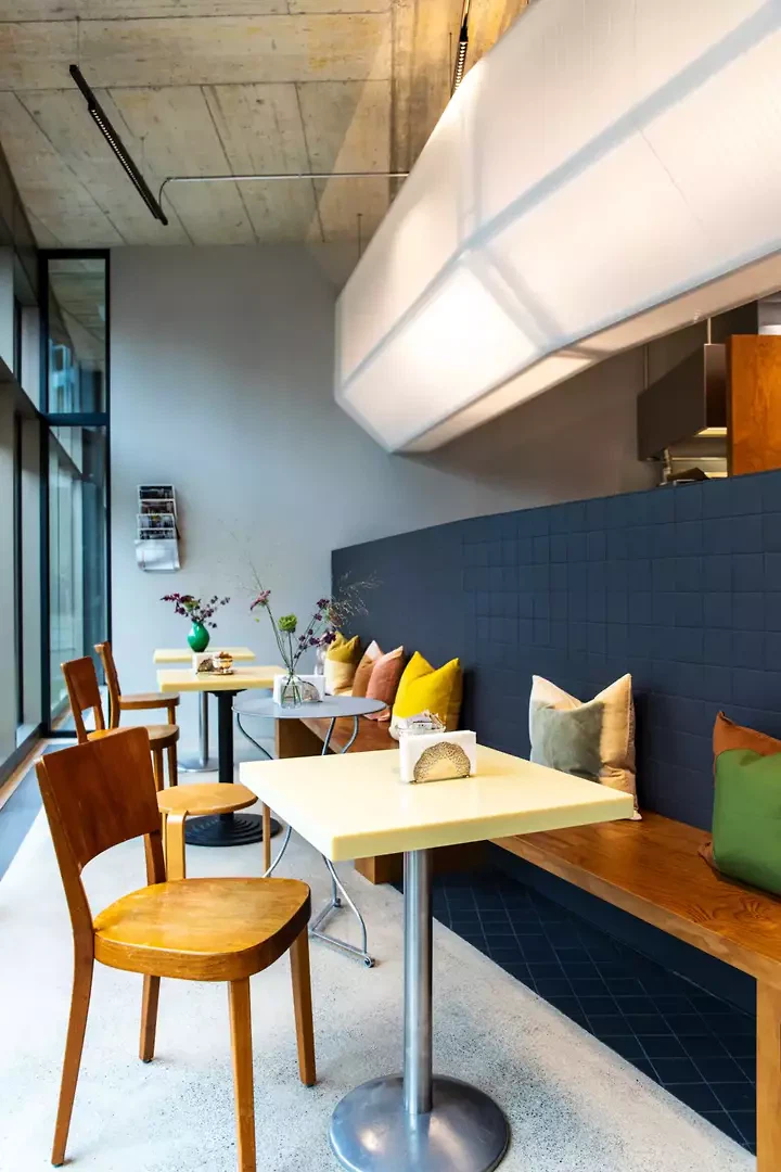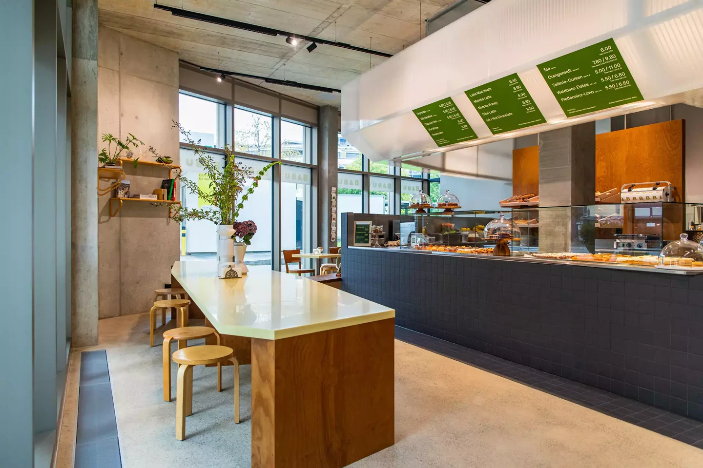 Babu’s Counter in der Binz, Zürich basiert auf einer klar strukturierten, funktionalen Innenarchitektur, die die vorhandene Gebäudestruktur aufnimmt und in eine zeitgemässe Formensprache überführt. Natürliche, materialauthentische Oberflächen und warme, zurückhaltende Farbtöne prägen die Atmosphäre, unterstützt durch eine ruhige, gleichmässige Lichtführung. Zentrales Element ist der Counter, der als räumlicher Mittelpunkt die Abläufe definiert, Orientierung schafft und eine transparente Interaktion ermöglicht. Ergänzt durch präzise gesetzte Details und eine sorgfältige Zonierung verbindet die Gestaltung effiziente gastronomische Prozesse mit einer angenehmen Aufenthaltsqualität – und schafft so ein kompaktes Format, das sowohl funktional als auch einladend wirkt.