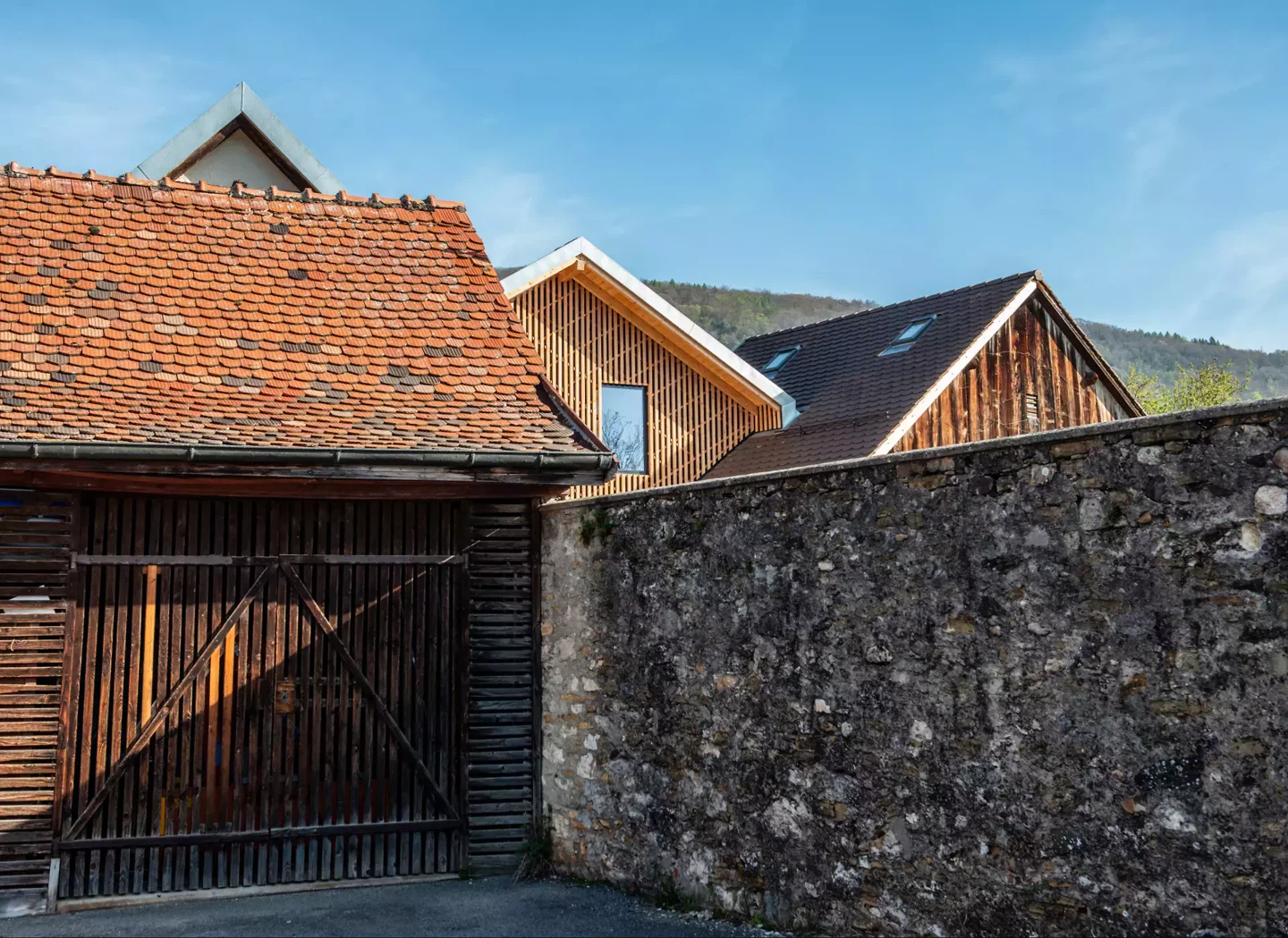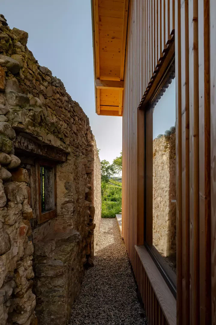 Die Inspiration liegt in der traditionellen ländlichen Architektur und der sorgfältigen Analyse des Ortes. Das Projekt nutzt die Geschichte und das Potenzial der bestehenden Baukörper für eine zeitgemässe Neuinterpretation im Dialog mit der Vergangenheit.