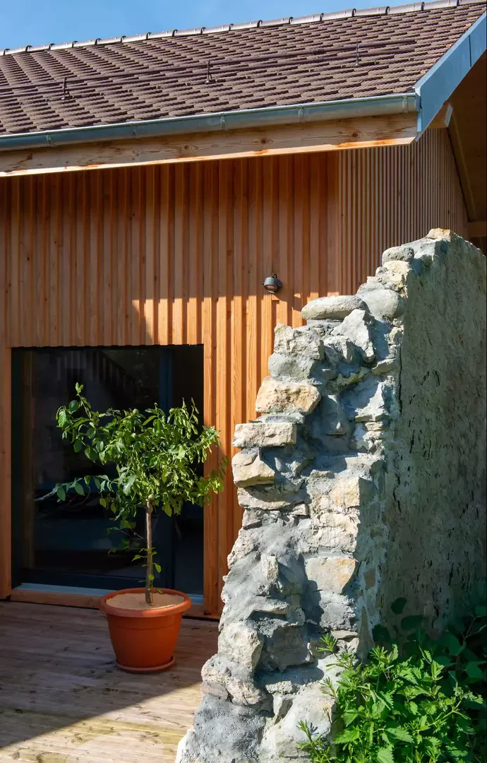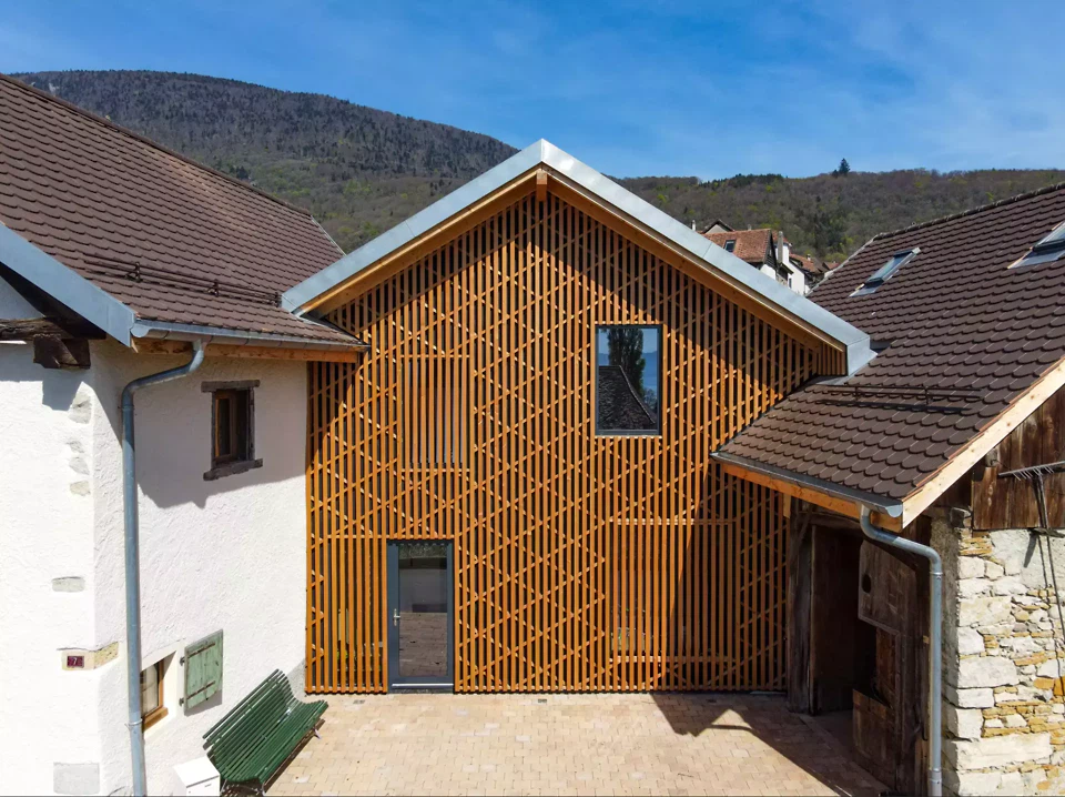 Das Projekt entspricht dem Schwerpunkt des Büros Tangram: der Transformation bestehender Bauten, insbesondere im ländlichen Kontext. Es basiert auf der Aufwertung des Bestands, der ökologischen und sozialen Integration sowie dem Einsatz lokaler Materialien.