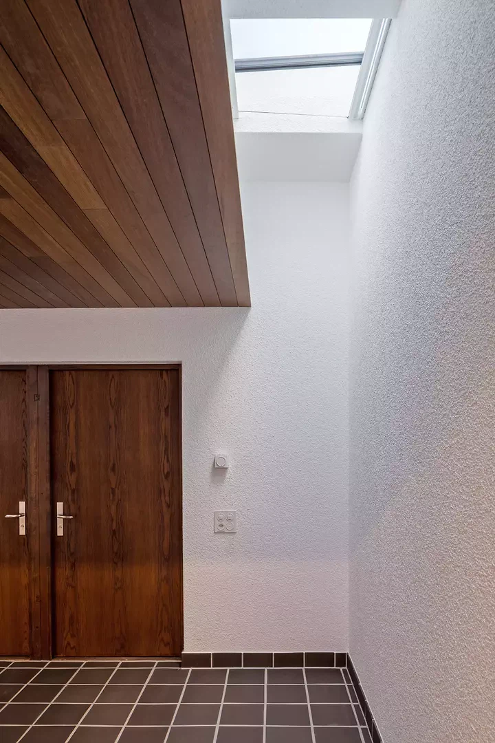 Der Entwurf folgt konsequent dem Prinzip des Weiterbauens im Bestand. Die bestehende Architektur wurde nicht verändert, sondern durch präzise Eingriffe weitergeführt. Erhalt, Reparatur und gezielte Ergänzung bilden die Grundlage. Bestehende Oberflächen wurden instandgesetzt oder, wo notwendig, ersetzt. Konstruktion und Materialität bleiben ablesbar und werden in ihrer Wirkung gestärkt. Eingriffe erfolgen punktuell und orientieren sich an den vorhandenen räumlichen Qualitäten. Die Inspiration liegt dabei im Bestand selbst – in seiner Lichtführung, Materialität und räumlichen Klarheit –, wobei die enge Zusammenarbeit mit der Denkmalpflege zu einer weiteren Präzisierung und Reduktion der Eingriffe führte.