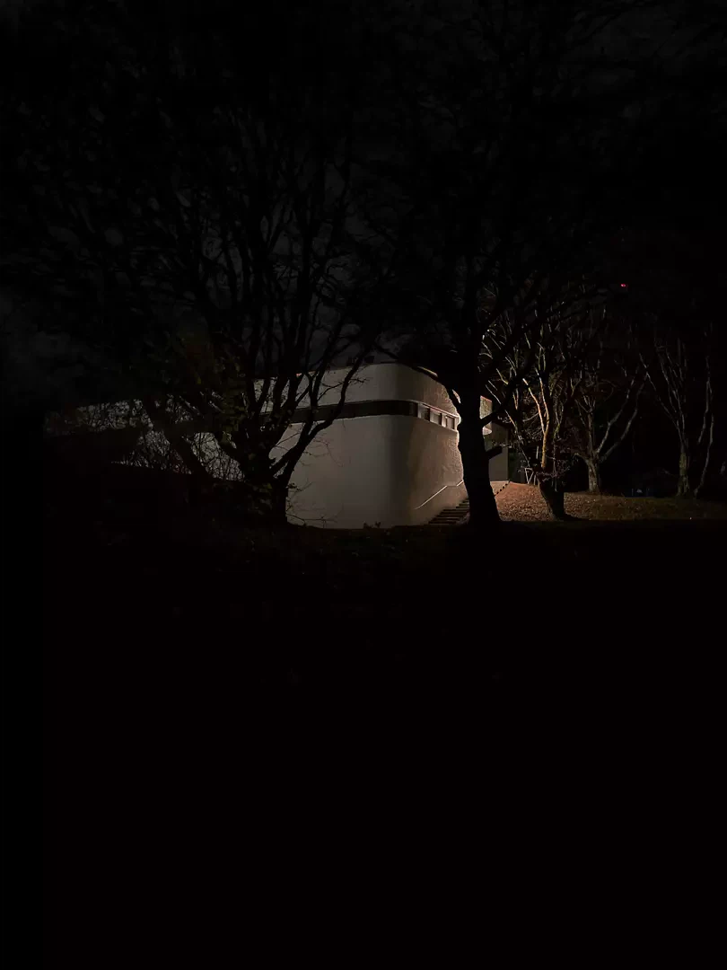 Die Anlage zeichnet sich durch eine zurückhaltende architektonische Haltung aus. Fliessende Wandbewegungen führen Licht und Landschaft in die Innenräume. Die Materialisierung ist einfach und klar: weisser Putz, Sichtbetonstützen und Holz prägen die Räume und ihre Wirkung. Der grobkörnige Kellenwurfputz modelliert das Licht und verleiht den Oberflächen eine spürbare Tiefe, während dunkle Holzdecken einen ruhigen Kontrast setzen und den Innenraum in den Aussenraum weiterführen. Die Atmosphäre entsteht aus dieser Reduktion und aus der Sorgfalt im Detail – insbesondere die Oberflächen werden als zentrale Träger dieser Wirkung verstanden.