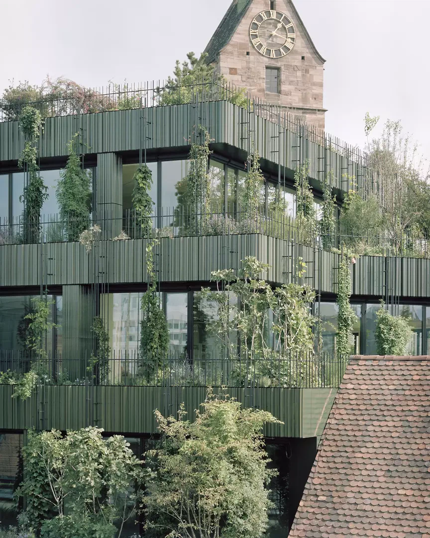 Projekt für die Neugestaltung des Globus respektiert die über 120 Jahre gewachsene bauliche Substanz mit ihren architektonischen Brüchen und überführt sie in eine neue, kohärente Struktur. Die historisch relevanten Fassaden aus unterschiedlichen Bauphasen bleiben erhalten, während das Gebäude im Inneren neu organisiert und räumlich geöffnet wird. Ein zentraler vertikaler Raumzusammenhang ersetzt die klassische Geschosslogik des Warenhauses und schafft Orientierung sowie neue Bezüge zwischen den Nutzungen. Vom Untergeschoss bis ins vierte Obergeschoss entstehen zusammenhängende Verkaufsflächen, ergänzt durch neue Zugänge, insbesondere am Martinskirchplatz, die das Gebäude stärker mit dem Stadtraum verknüpfen. Die Aufstockung formuliert mit den neuen Dachgeschossen eine zusätzliche Schicht, die als terrassierte, intensiv begrünte Landschaft ausgebildet ist. Sie reagiert auf die topografische Lage am Fuss des Münsterhügels und leistet gleichzeitig einen Beitrag zur Verbesserung des Mikroklimas. Das Projekt versteht sich als Transformation eines bestehenden Gebäudes, die dessen Identität bewahrt und zugleich eine langfristig flexible Nutzung ermöglicht.