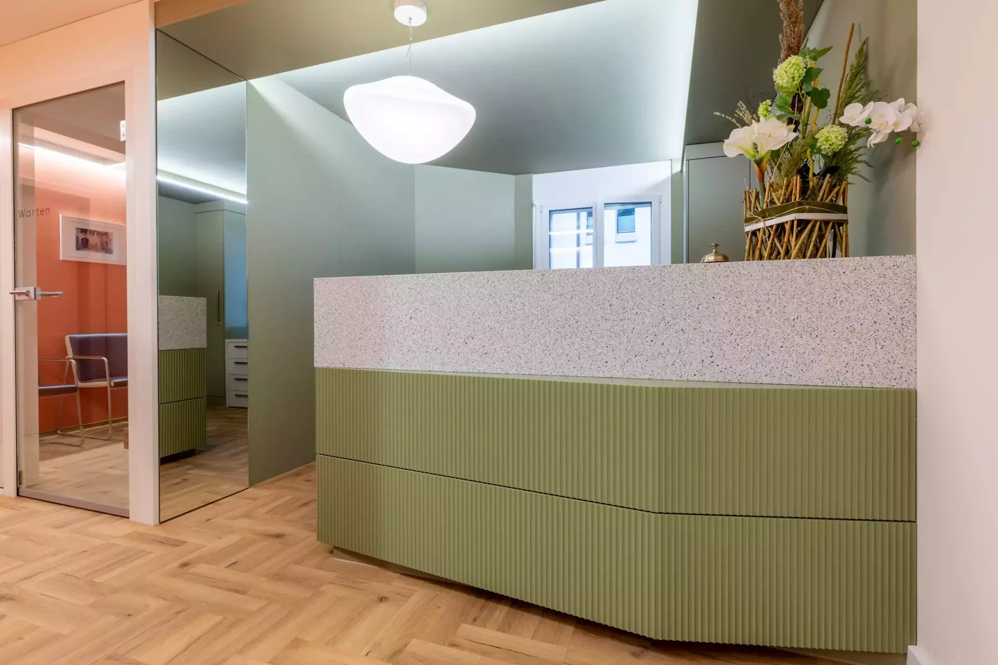 - klare Trennung von Patienten- und Arbeitszonen