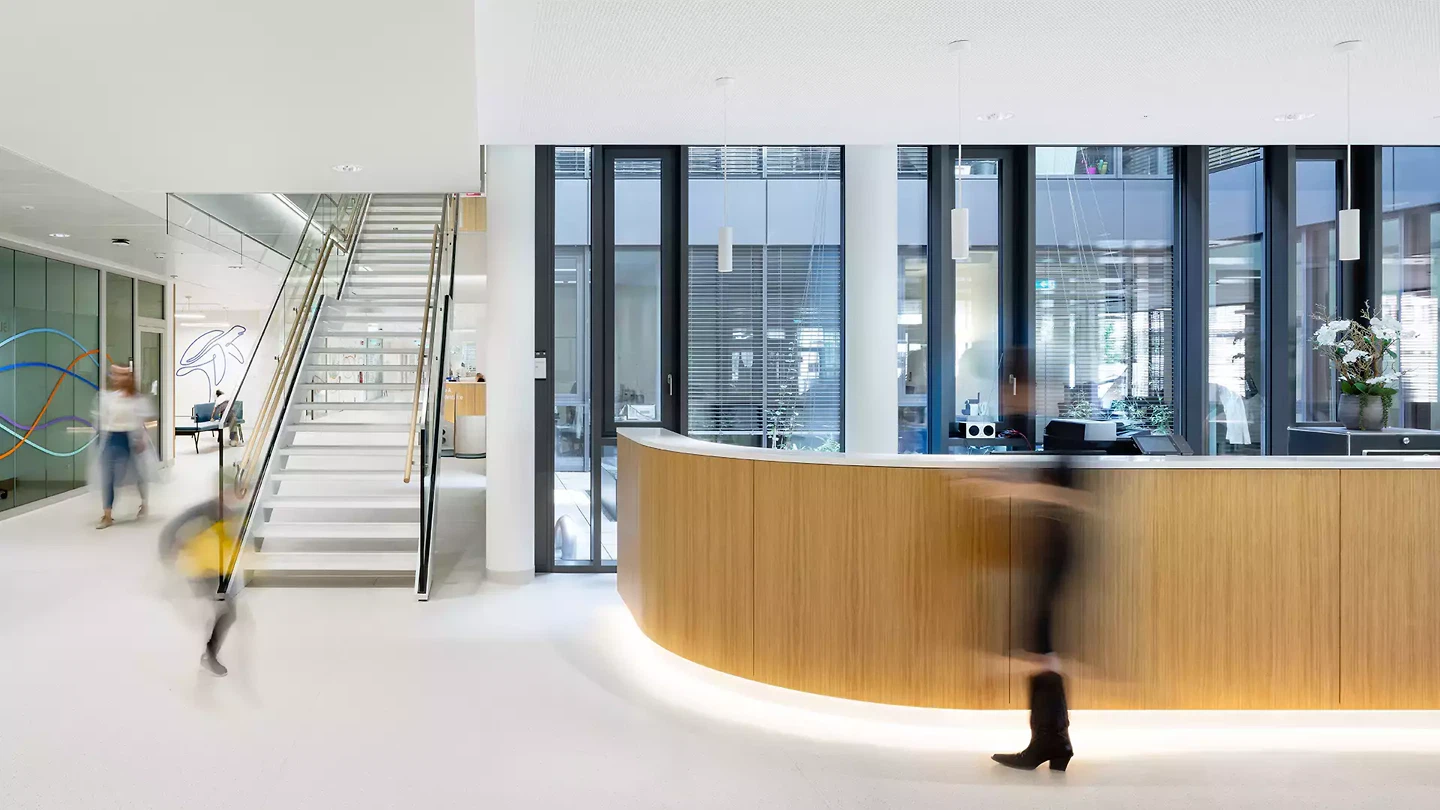 Über seine primäre Funktion der medizinischen Versorgung hinaus ist das Kinderspital als ein Lebens-, Heilungs- und Trostraum für die jungen Patient*innen sowie ihre Familien konzipiert. Eingebettet in einen dichten, vielschichtigen Kontext reagiert das Spital auf komplexe Anforderungen. Ein horizontaler, langgestreckter Baukörper – das «Gebäude B» – schiebt sich vor die Frauenklinik. Die Wahrung der Lichtverhältnisse und der Präsenz dieses historischen Gebäudes innerhalb der Spitalstadt war entscheidend für die Harmonie des Areals und sein funktionales Gleichgewicht.