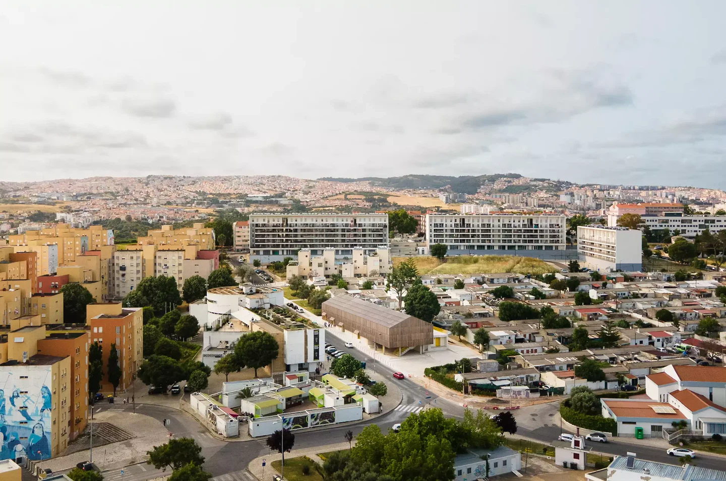 Am Stadtrand von Lissabon im Stadtteil Carnide gelegen, entwickelte sich das Viertel Padre Cruz von landwirtschaftlich genutzten Flächen zu einer der grössten Sozialwohnsiedlungen der Iberischen Halbinsel. In den 1960er-Jahren wurde ein ehemaliger Milchbauernhof in eine Markthalle umgewandelt und etablierte sich als neuer Treffpunkt der Gemeinschaft. Das Projekt definiert die Haupthalle neu, indem es ein flexibles Nutzungsprogramm einführt und die bestehenden Läden reorganisiert. Zudem wird ein neues Geschoss mit multifunktionalen Bereichen ergänzt, darunter eine Terrasse, ein Auditorium sowie ein zum Strassenraum geöffneter Lichthof. Die Eingriffe bewahren den sozialen und kulturellen Charakter des Gebäudes und verbinden lokale Materialien mit einer leichten Dachkonstruktion.
