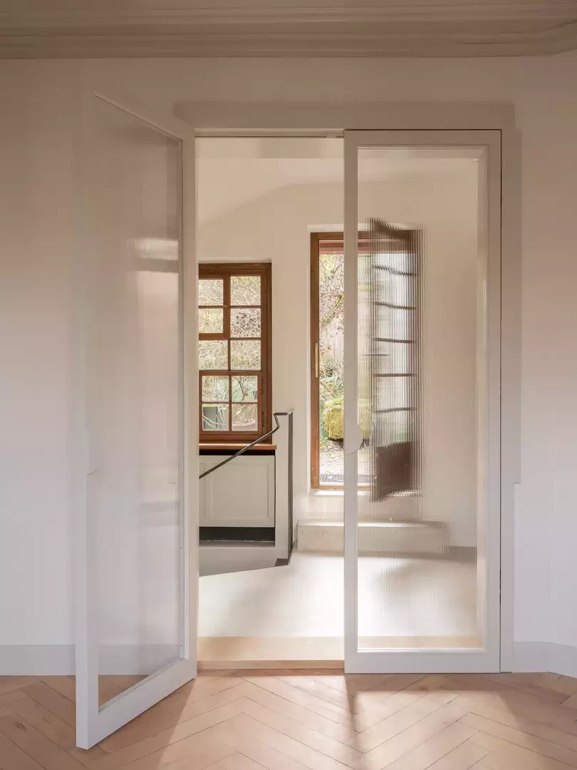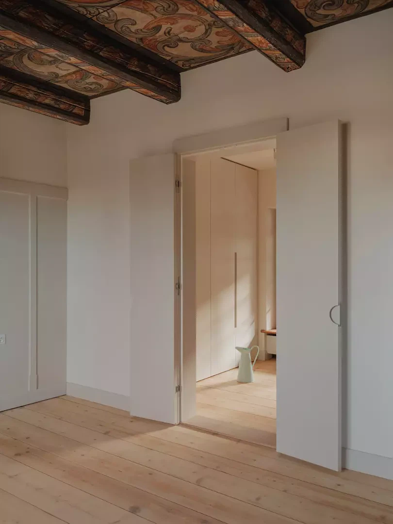 Die Planung folgt konsequent der Haltung des einfachen Bauens. Eingriffe wurden gezielt priorisiert, bestehende Qualitäten genutzt und Komfortanforderungen kritisch hinterfragt. Spuren und Flickstellen der Baugeschichte bleiben bewusst sichtbar und tragen zur räumlichen Differenzierung bei. Historische Holz- und Zementböden aus unterschiedlichen Epochen wurden geschliffen, ergänzt und weiterverwendet, Täferwände erhielten eine abgestufte, helle Farbgebung. Fenster aus dem Jahr 1750 konnten in Zusammenarbeit mit einem spezialisierten Fensterbauer ertüchtigt werden, sodass sie heutigen Anforderungen entsprechen, ohne ihre historische Wirkung zu verlieren. So entsteht ein Wohnhaus, das historische Substanz bewahrt und zugleich zeitgemässe Wohnqualität ermöglicht – ein präzises Zusammenspiel von Geschichte und Gegenwart.