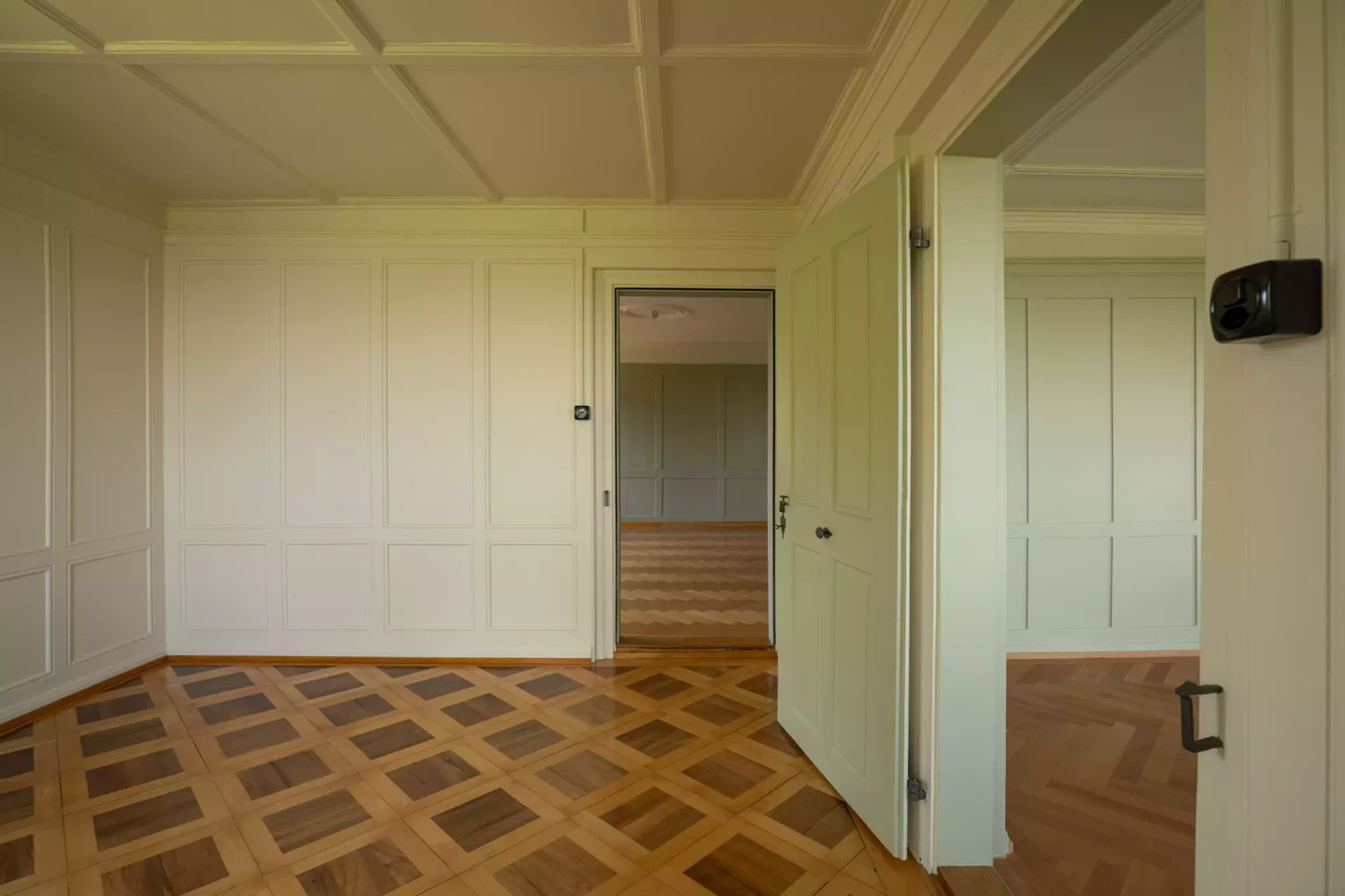 In einer Zeit, in der vielerorts in der Ostschweiz historische Pfarrhäuser in den Dörfern verkauft und umgenutzt werden, kann das Pfarrhaus in Altnau aufgrund eines klugen Nutzungskonzepts bestehen bleiben. Die finanziellen Rahmenbedingungen wurden entsprechend eng gesteckt und bildeten die verbindende Grundlage einer Thesenstudie. Unsere Inspiration für dieses Projekt lag dann in der Erkenntnis, dass das geschützte Haus in den letzten 300 Jahren bereits mehrmals umgebaut wurde. Dabei blieben unterschiedliche Spuren und Überlagerungen sichtbar. Uns interessierte die Frage: Weshalb hatte etwas Bestand? Seien es die unterschiedlichen Türbeschläge, Einbauten oder Beläge. Darauf aufbauend entwickelten wir ein ergänzendes Konzept, behielten die Fenster aus den 1990er Jahren, dämmten das geschützte Haus, wo sinnvoll, und formten behutsam um und weiter. Die bestehende Farbigkeit wurde aufgrund einer Analyse gesucht, wir übernahmen diese, ergänzten und entwickelten sie weiter.