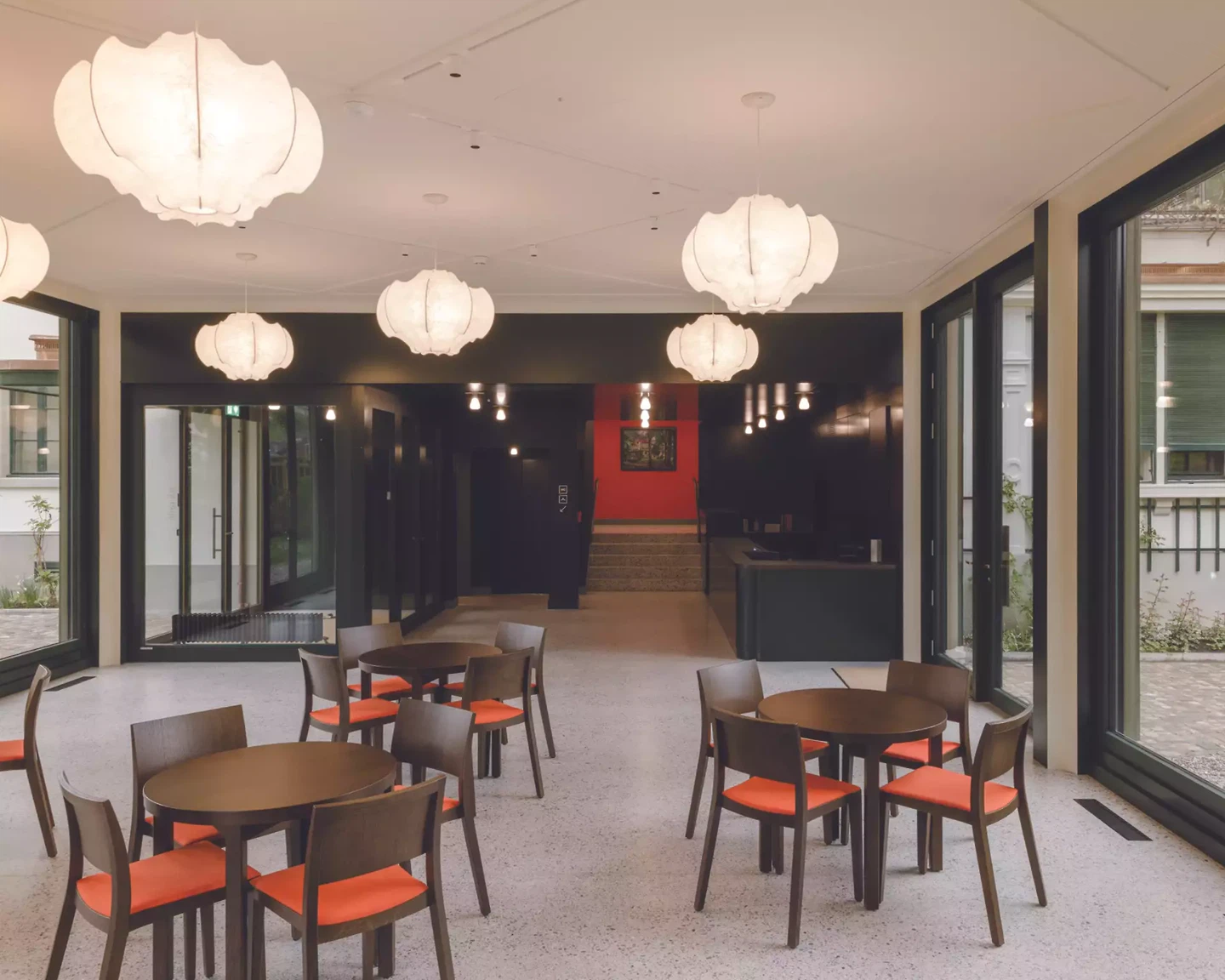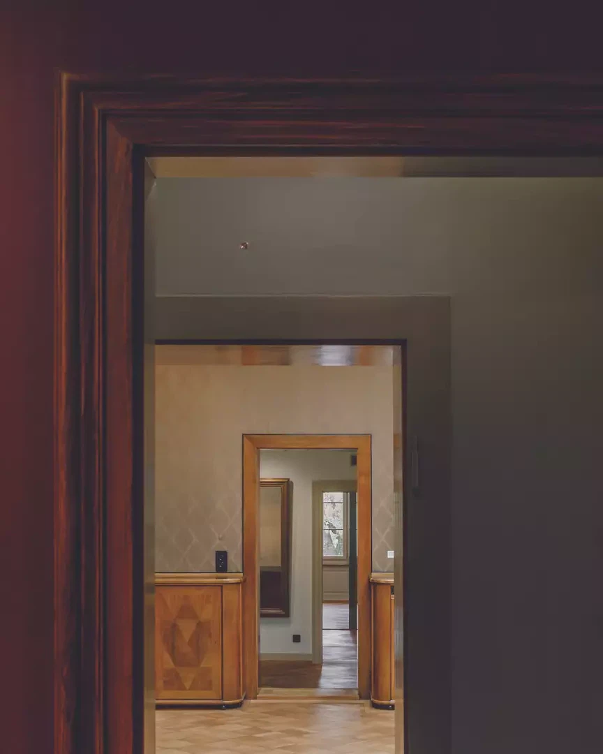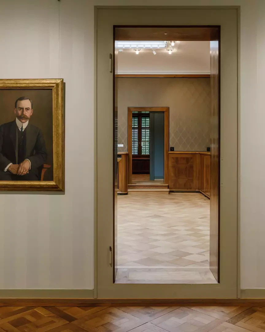 Im Verlauf der Planung kam es zu Präzisierungen, insbesondere aufgrund von vertieften Erkenntnissen, technischen Anforderungen und der prozessbedingten Weiterentwicklung. Dennoch blieb die grundlegende Idee über den gesamten Prozess hinweg erhalten und wurde schrittweise weiterentwickelt. Aktuelle energetische und konstruktive Anforderungen wurden in das Projekt integriert, ohne gestalterisch in den Vordergrund zu treten. Die notwendigen technischen Massnahmen zur Klimastabilisierung, Sicherheit und Erschliessung wurden so umgesetzt, dass sie möglichst unsichtbar bleiben. Nachhaltigkeit zeigt sich dabei vor allem im Weiterverwenden und Anpassen des Bestands sowie in der langfristigen Denkweise des Projekts. Zum Gelingen der Villa Flora trug nicht ein einzelnes Material bei, sondern das präzise Zusammenspiel verschiedener Strategien: Holz im Pavillon, die Neuinterpretation historischer Tapeten und die sorgfältige Integration moderner Technik. Entscheidend war die zurückhaltende Umsetzung, die den historischen Charakter bewahrt und gleichzeitig einen zeitgemässen Museumsbau schafft. Obwohl auf den ersten Blick nur Tapeten erneuert und ein Anbau hinzugefügt wurden, wurden zahlreiche Massnahmen für Klimastabilität und Sicherheit der Kunstwerke umgesetzt: Das Haus wurde partiell unterfangen, Lüftungsleitungen in bestehenden Schächten geführt, Elektroverkabelungen unsichtbar in Stuckdecken und stoffbespannten Wänden verlegt, und die neuen Fenster sind alarmgesicherte Dreischicht-Sicherheitsverglasungen, die harmonisch in die historische Fassade integriert sind.