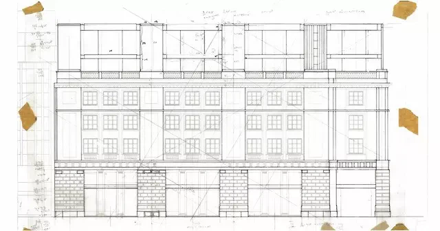 Mit dem jüngsten energetischen und gebäudetechnischen Erneuerungsbedarf stellte sich abermals die Frage nach der Zukunft dieses ambivalenten Stadtbausteins. 2015 reagierte die Eigentümerin, die Genossenschaft «zum Baugarten», mit einem Studienauftrag, der die Sanierung der geschützten Fassade, eine funktionale Neuordnung sowie eine städtebauliche Präzisierung prüfen sollte. Die Option, die im Quartier zulässige Gebäudehöhe von 25 Metern voll auszuschöpfen, bot die Chance, die verlorene Präsenz des Hauses zurückzugewinnen und es wieder zu einem kraftvollen Baustein im urbanen Gefüge zu machen. Unter den eingeladenen Büros – Baumschlager Eberle, EMI, Boltshauser und Loeliger Strub – überzeugte schliesslich der zeitgemässe Vorschlag des Studios Märkli die Jury.