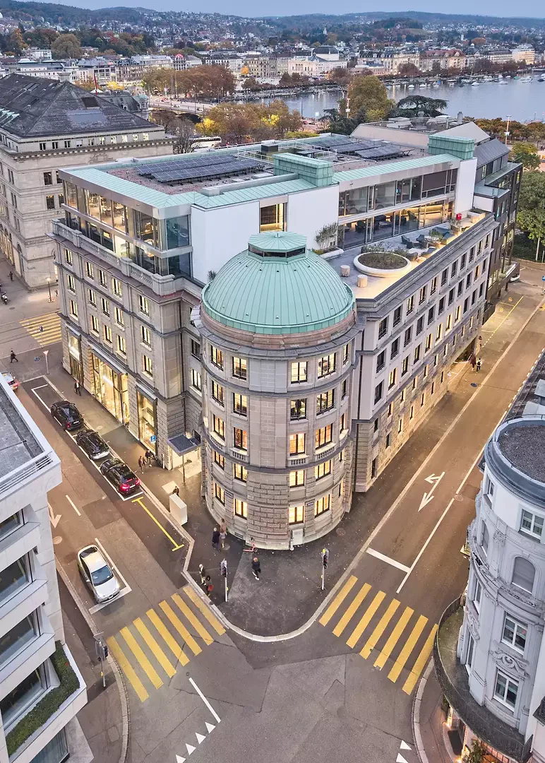 Die planerische Grundlage bildete der private Gestaltungsplan «Baugarten» von 2018, entwickelt in Zusammenarbeit mit der Stadt Zürich und der Denkmalpflege. Er definiert exakt den Rahmen des Vorhabens: Die Gebäudehöhe darf 433,38 Meter über Meer nicht überschreiten, mit einer Toleranz von lediglich 50 Zentimetern. Der Schutzvertrag fixiert zudem die Unantastbarkeit von Fassade samt Balustrade und Rundbau. Im Gegenzug genehmigte die Stadt die Aufstockung und die neuen Untergeschosse sowie das vollständige Ersetzen des Inneren. Die erhöhte Ausnutzung wurde durch eine Ausgleichszahlung von 2,6 Millionen Franken an städtische Aufwertungsmassnahmen kompensiert – ein Mechanismus, der private und öffentliche Interessen in ein gutes Gleichgewicht bringt.