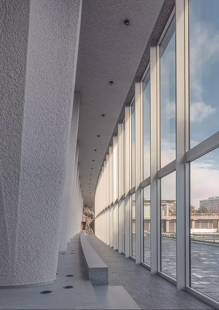 Die Grösse wird zur zentralen Frage einer ganzen Architektengeneration. Die Industrialisierung liefert darauf eine ebenso einfache wie radikale Antwort: Wiederholung. Ein Fenster, 4000 Fenster; ein Büro, 1300 Büros. Der Park schliesslich, von Walter Brugger als landschaftlicher Sockel modelliert, öffnet sich über die Anhöhe des Morillon hinaus in die Weite der Landschaft. Fünfzig Jahre später hat sich die Welt grundlegend verändert. Die Transformation dieses weitläufigen Gebäudes verlangt daher nach einer erneuten Lektüre. Neben energetischen Anpassungen im Inneren, brandschutztechnischen Anforderungen mit stärkerer räumlicher Gliederung sowie neuen Sicherheitsdispositiven liegt der eigentliche Impuls der Erneuerung in einer «Ent-Departementalisierung» dieser Arbeitsmaschine. Wo einst 1300 identische Büros eine homogene Struktur bildeten, verlangen heutige, digital geprägte Arbeitsweisen nach Flexibilität und Transparenz. Geschlossene Projekträume, Bibliotheken und Lesesäle weichen offenen Konferenzräumen, die sich zur umgebenden Landschaft öffnen. Gleichzeitig wandelt sich auch der Park. Einst frei zugänglich, muss er heute geschützt werden – durch Filter- und Barrierevorrichtungen. Am Rand des Areals bündeln ein Pförtnerhaus und ein Zugangspavillon die neuen Funktionen der Akkreditierung und Sicherheit. Wege und Fussgängerführungen werden neu organisiert und inszenieren die Annäherung an den Ort – vom Park bis zum Wasserbecken – als räumliche Sequenz.