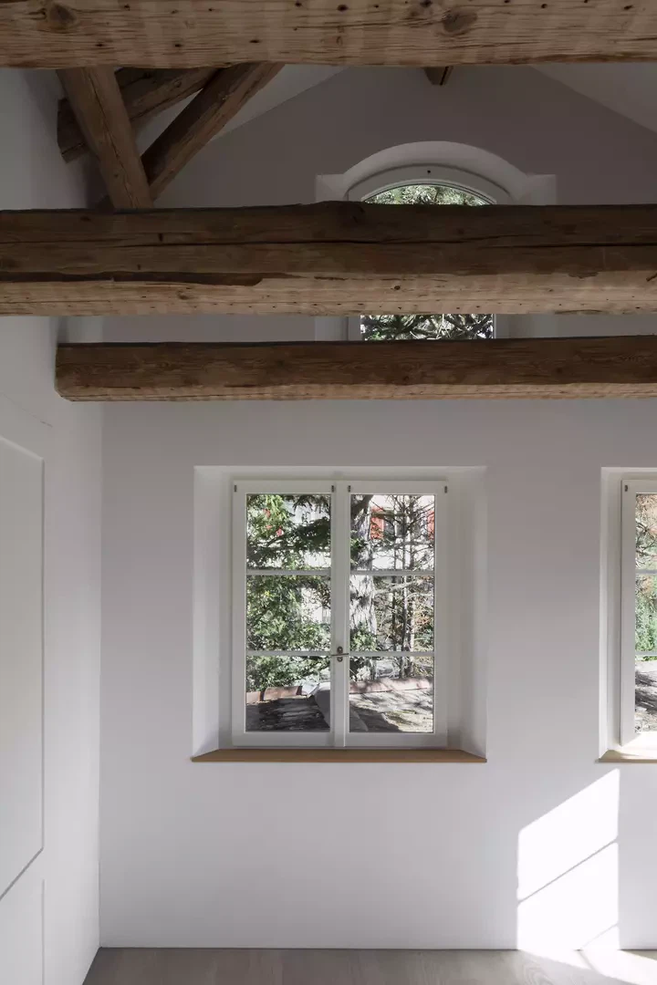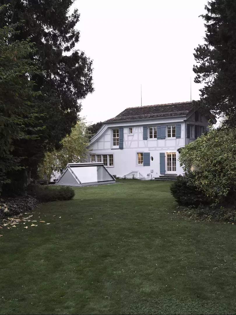 Das Fachwerkhaus mit seinen unregelmässig angeordneten Fenstern befindet sich im historischen Zentrum von Zollikon und weist Spuren eines Baus aus dem 17. Jahrhundert auf. Weitere Renovierungen stammen aus dem 19. Jahrhundert, spätere Anbauten aus den 1950er- und 1970er-Jahren. Die räumliche Anordnung des ursprünglichen Grundrisses ist nicht mehr erkennbar. Die Innenräume scheinen von den Renovierungen der 1970er-Jahre geprägt zu sein, die den skurrilen Stil des damaligen Eigentümers widerspiegeln. Diese Eingriffe zeugen von einer Überschwänglichkeit, die im Kontrast zum pragmatischen Kern aus dem 17. Jahrhundert steht. Das Haus verkörpert somit die Fähigkeit, Zeugen verschiedener Epochen zu beherbergen und zu feiern. Es repräsentiert auch die Dichotomie zwischen Innen und Aussen: die Unabhängigkeit zwischen Körper und Hülle, ihren Gegensatz und die poetischen Risse, die daraus entstehen. Das Projekt versucht somit, subtil in eine chaotische Struktur einzugreifen und eine räumliche Choreografie zu schaffen, die neue Verbindungen zwischen den verschiedenen Raumtypen herstellt. So entstehen neue Beziehungen durch Treppen und Öffnungen zwischen Aussen- und Innenräumen sowie zwischen dem ursprünglichen Hauskörper und seinen Erweiterungen. Wo sich früher in einem Stahlcontainer ein Innenpool befand, befindet sich heute ein Wohnbereich, der sich zum Garten und zum umliegenden Dorf hin öffnet.