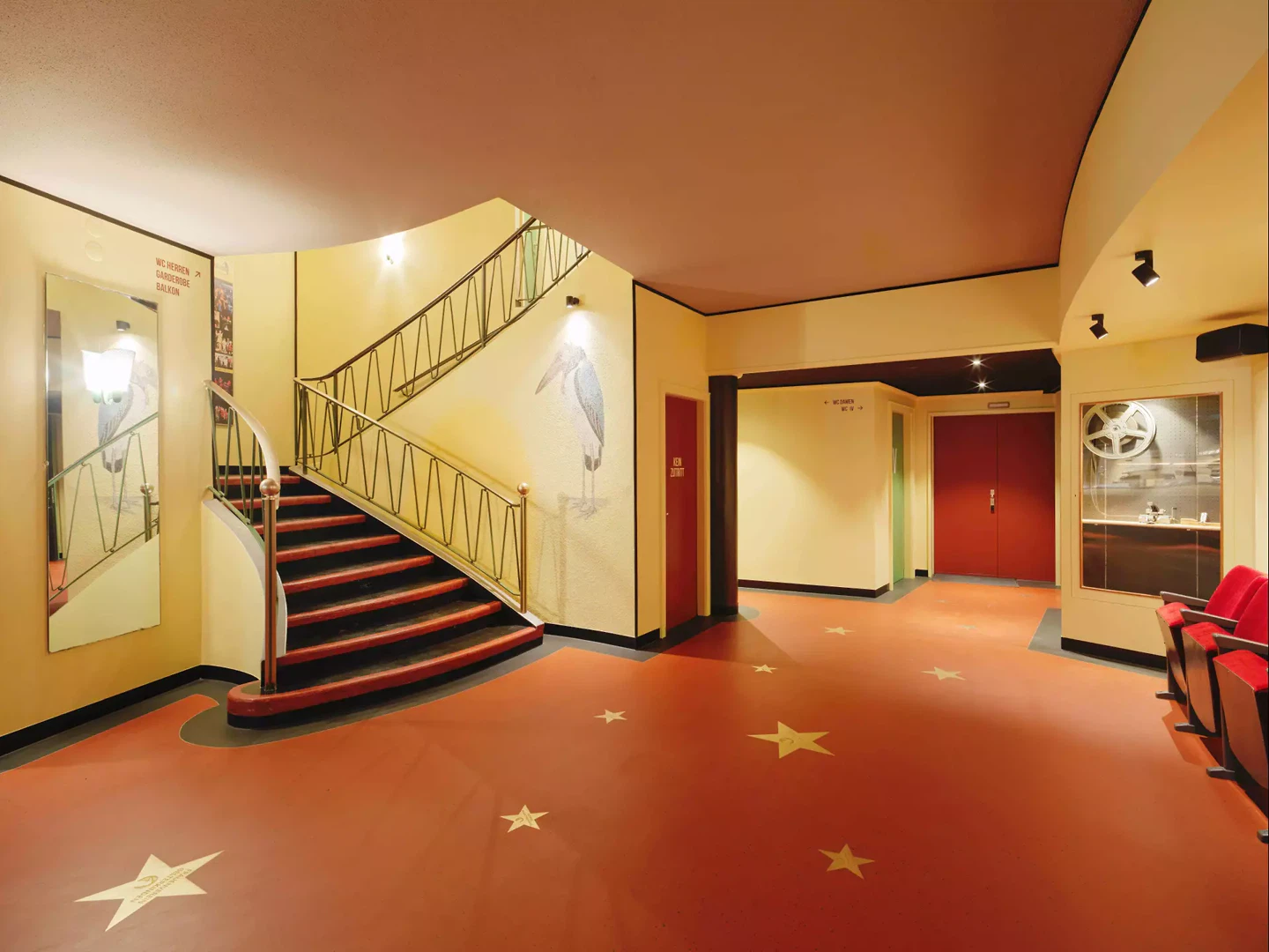 Mit dem neu geschaffenen Foyer an der Schulgasse wird das im Hinterhof versteckt liegende Kinogebäude neu von der Schulgasse erlebbar. Das Marabu gewinnt damit an Präsenz im Dorfkern, und die Wahrnehmung sowie die Wichtigkeit in der Region werden gestärkt. Beim Umbau des Marabus mussten einige besondere Herausforderungen gelöst werden. Der bestehende, von aussen erschlossene Gewölbekeller wurde funktional in das neue Raumkonzept integriert. So wurde aus dem ehemaligen Tankraum der Ölheizung die fehlende Künstler*innengarderobe. Ebenfalls konnten betriebliche Abläufe durch die Schaffung von neuen Lagern und Technikzonen optimiert werden. Die Schnittstellen zwischen den Bauten aus verschiedenen Epochen und die Anforderungen an den neuesten Stand der Bautechnik waren eine anspruchsvolle Aufgabe. Durch eine intensive Auseinandersetzung mit dem vorherrschenden Farb- und Materialkonzept und dessen Weiterentwicklung auf das neue Raumkonzept konnte die Identität des geschichtsträchtigen Ortes erhalten bleiben.