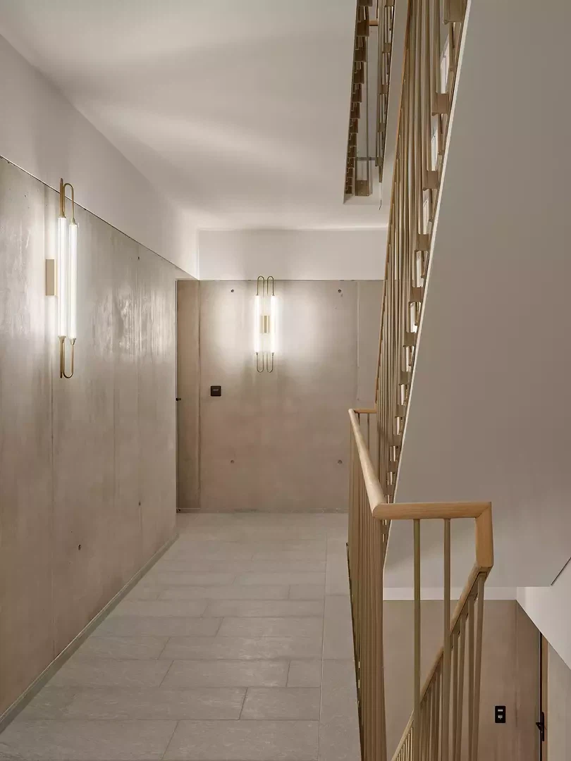 Die prominente Ecke an der Webernstrasse wird nebst skulpturalem Eingang mit einem Attikaakzent bedacht – auch als Reminiszenz an den Vorgänger. Zudem erweist sich das dank des Geländesprungs freigespülte Untergeschoss als Raumgeschenk, das zusammen mit dem Erdgeschoss eine Zäsur zur Strasse bewirkt. Die Obergeschosse teilen sich je vier zweiseitig orientierte Wohnungen mit Eckloggien. Das Attika wird je hälftig von einer grossen Wohnung besetzt, wobei eine vom überhohen Eck-Raum profitiert. Gekleidet ist alles in städtische Angemessenheit: Über dem elegant gerillten Betonsockel alternieren – getrennt von einem kräftigen Gurt – markante Fenstergewände mit konkaven Keramikpartien.