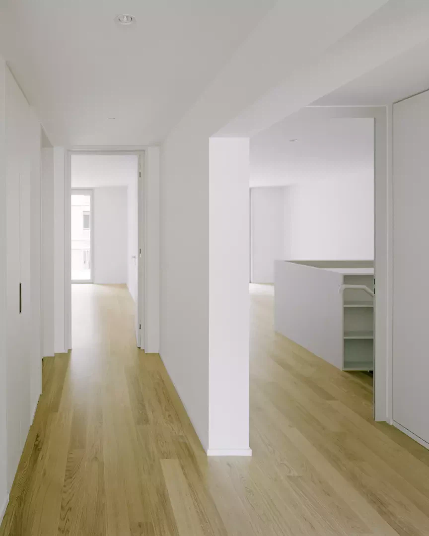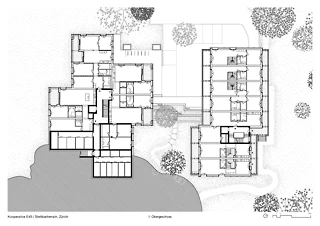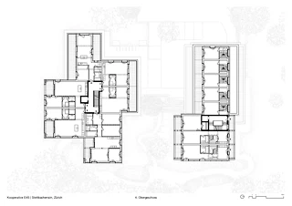 Die beiden Neubauten zielen darauf ab, die visuelle Kontinuität zwischen Strasse und Wald zu wahren und zu stärken. Der Innenhof soll als Treffpunkt für das Quartier dienen und die Strasse mit der Vegetation im Osten verbinden, wo die Landschaft als natürlicher, ruhiger und geschützter Raum erhalten bleibt. Ein zentrales Thema des Projekts ist die Variation der Wohnungstypologien, die ein breites Spektrum an Bewohnern mit unterschiedlichen Bedürfnissen und Lebenskonzepten anspricht. In diesem Sinne unterscheiden sich die räumlichen Konfigurationen der beiden Gebäude stark, obwohl sie auf einem ähnlichen Tragsystem basieren.