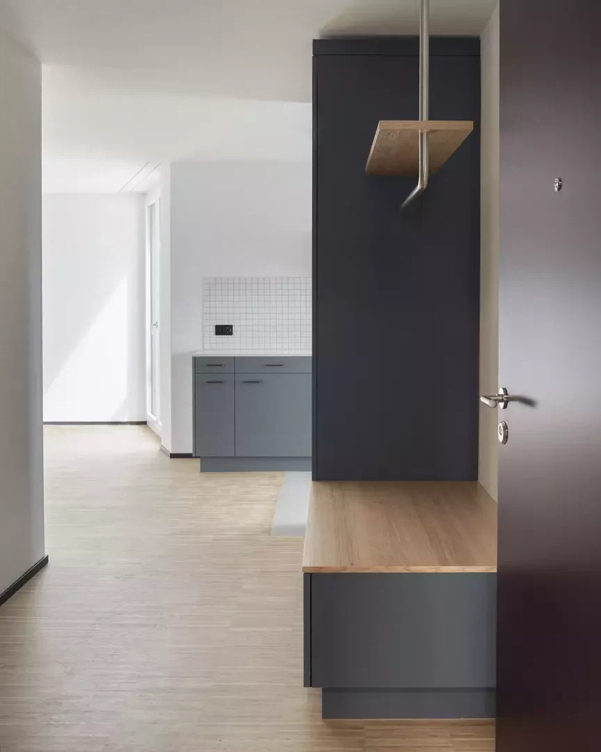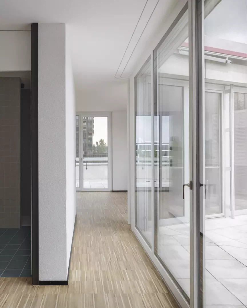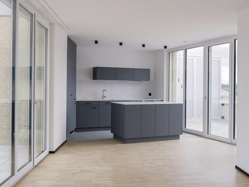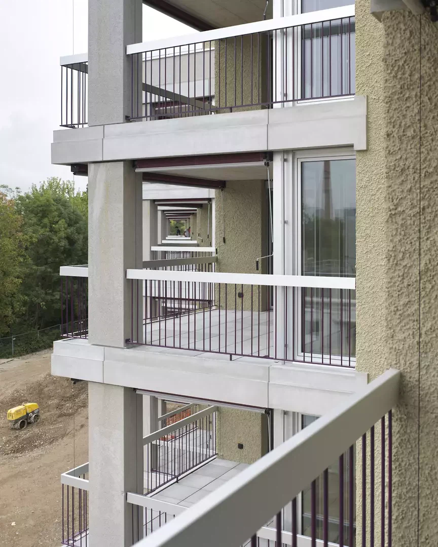 Nahe dem Zentrum von Dübendorf, eingebettet zwischen der Glatt und der Birchlenstrasse, haben Fischer Architekten in Zusammenarbeit mit Marco Duarte Architekten eine Siedlung mit 52 Mietwohnungen realisiert. Der Perimeter befindet sich in einem ruhigen Quartier an der Nahtstelle zwischen Industrie und den Ausläufern der kleinmassstäblichen Kernzonenbebauung. Der Neubau hat diversen Faktoren Rechnung zu tragen, um ein jetzt und in Zukunft schlüssiges Bindeglied im Stadtkörper zu sein. Das Projekt antwortet mit einer eindeutigen Setzung entlang der Strasse, die den im Bestand sehr heterogenen Strassenraum sowie die Glatt als Naturraum stärkt. Die grosszügig dimensionierte Fassadenlänge wird durch die ausgeprägte Staffelung auf ein ortsübliches Mass heruntergebrochen und bildet damit einen gut proportionierten Übergang zwischen den Stadtstrukturen. Die Staffelung vermag ausserdem die unterschiedlichen Geometrien der Glatt und der Strasse aufzunehmen und in einen Mehrwert für die Wohnungen umzuwandeln.