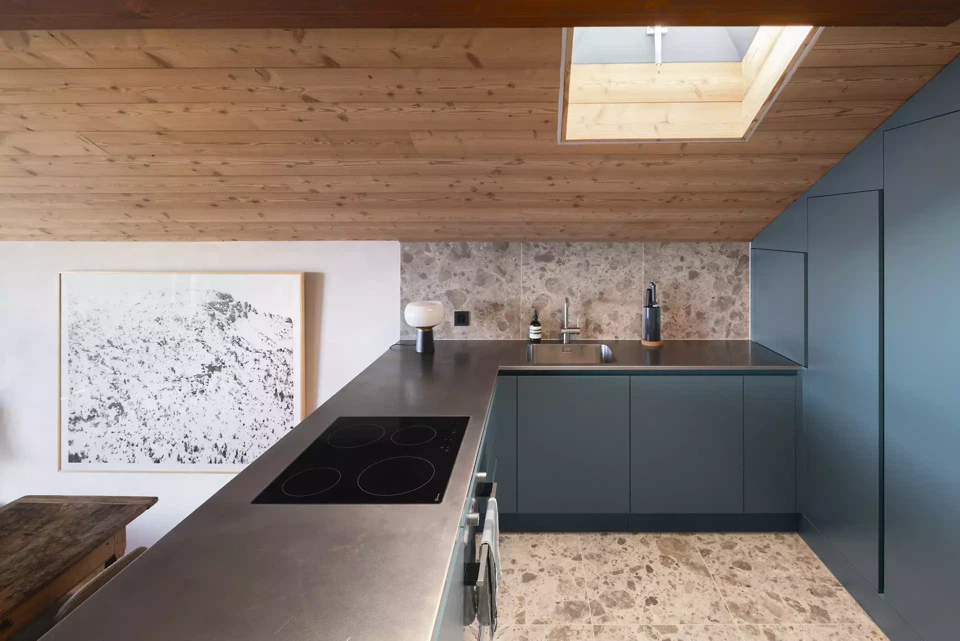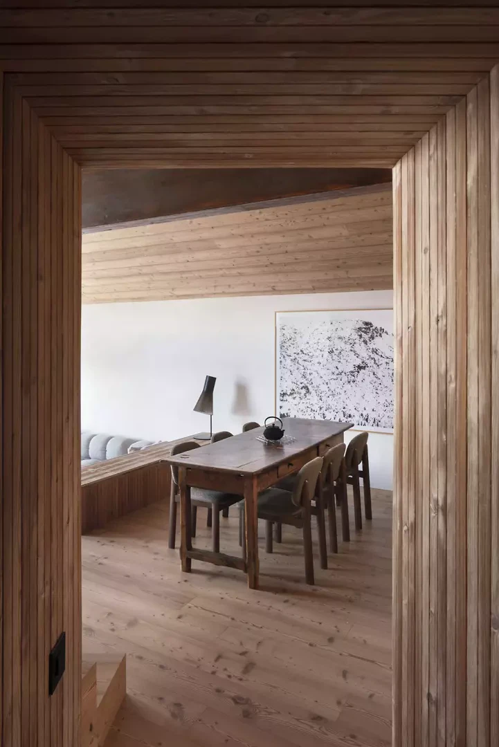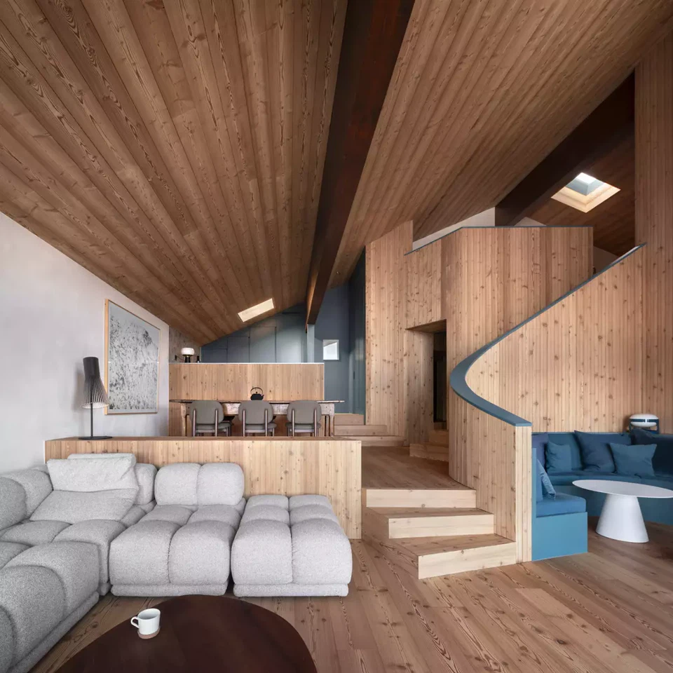 Die Sanierung einer Maisonette-Wohnung im Dachgeschoss eines Gebäudes aus den 1960er-Jahren in Anzère zielt darauf ab, die vorhandene räumliche Qualität durch klarere Wege, stärkere Sichtbeziehungen und fliessende Übergänge hervorzuheben, ohne die Privatsphäre zu beeinträchtigen. Dabei spielten die bestehende Struktur, das Dach sowie die unterschiedlichen Ebenen eine entscheidende Rolle und bestimmten die architektonischen Eingriffe massgeblich.