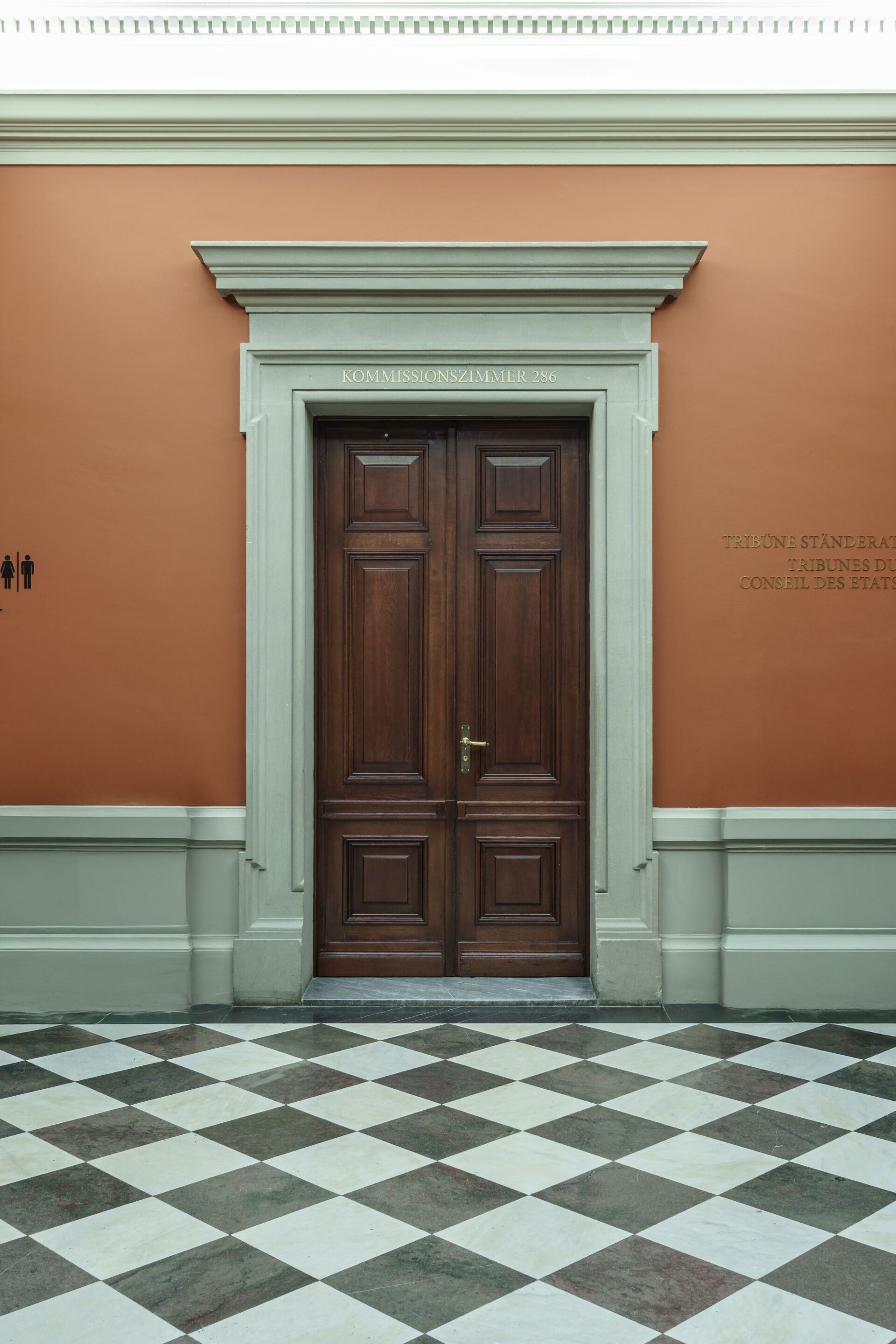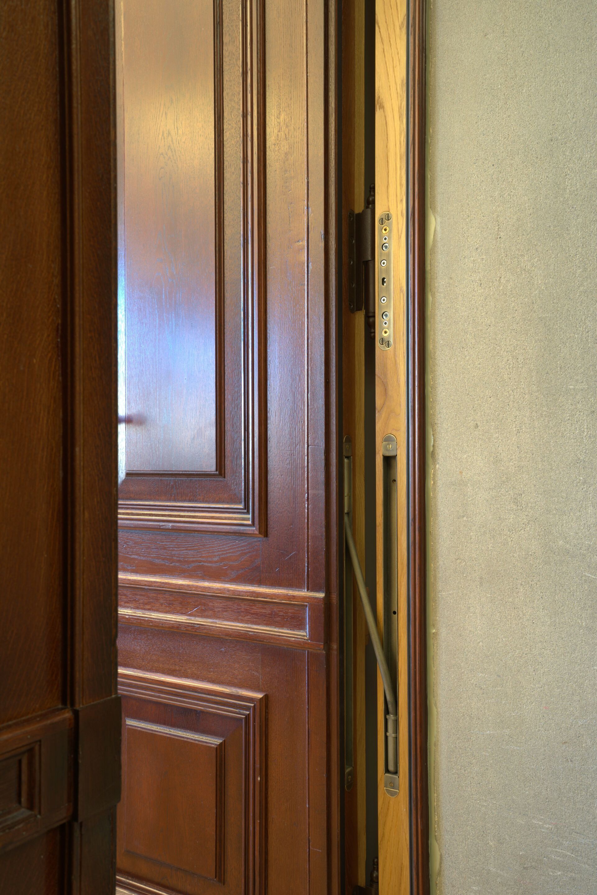 Fabriquées en chêne massif, soigneusement teintées et vernies, ces portes allient désormais tradition et haute résistance. Le résultat: un élément durable et esthétiquement harmonieux, capable de répondre aux exigences d’un bâtiment national très fréquenté.