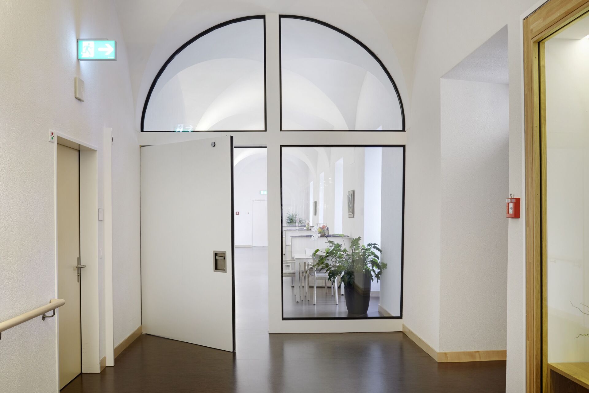 Porte coupe-feu à hauteur de plafond, réalisée par Frank Türen, membre de la FST | Photo © Feuerschutzteam