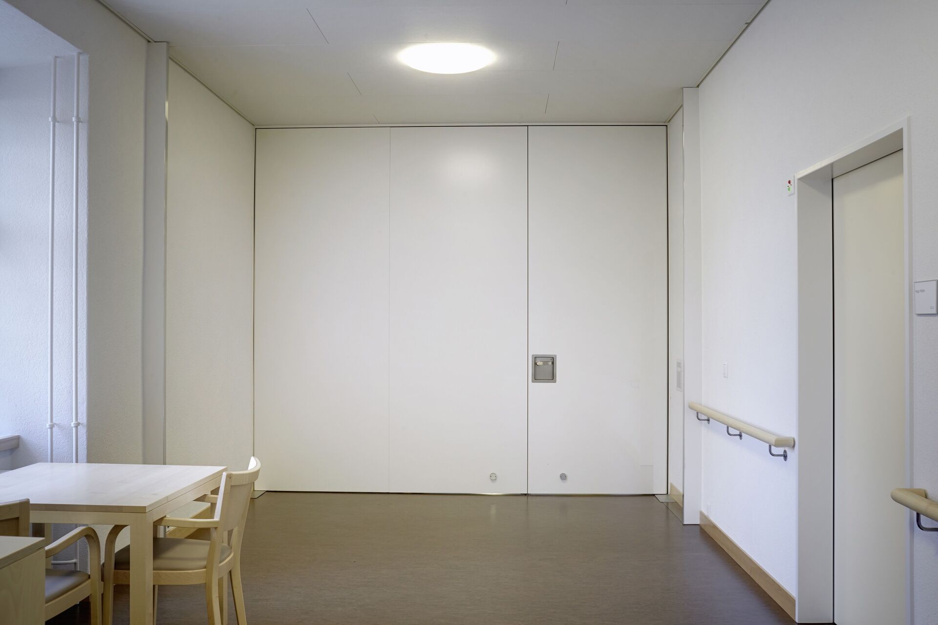 Les portes coupe-feu à poivot sont également appelées « portes dormantes ». Au quotidien, elles restent invisibles et permettent de libérer les passages et d'ouvrir l'espace. Elles n'entrent en action qu'en cas d'incendie: elles se ferment automatiquement et forment une cloison coupe-feu fiable. Cette interaction est rendue possible par un aimant de retenue intégré dans le mur, qui est relié au système d'alarme incendie ou aux détecteurs de fumée. Dès que de la fumée ou un incendie est détecté, le système libère la porte et veille à ce qu'elle se ferme automatiquement au moment décisif. Le placement précis des détecteurs de fumée est essentiel pour garantir un déclenchement précis et sûr.