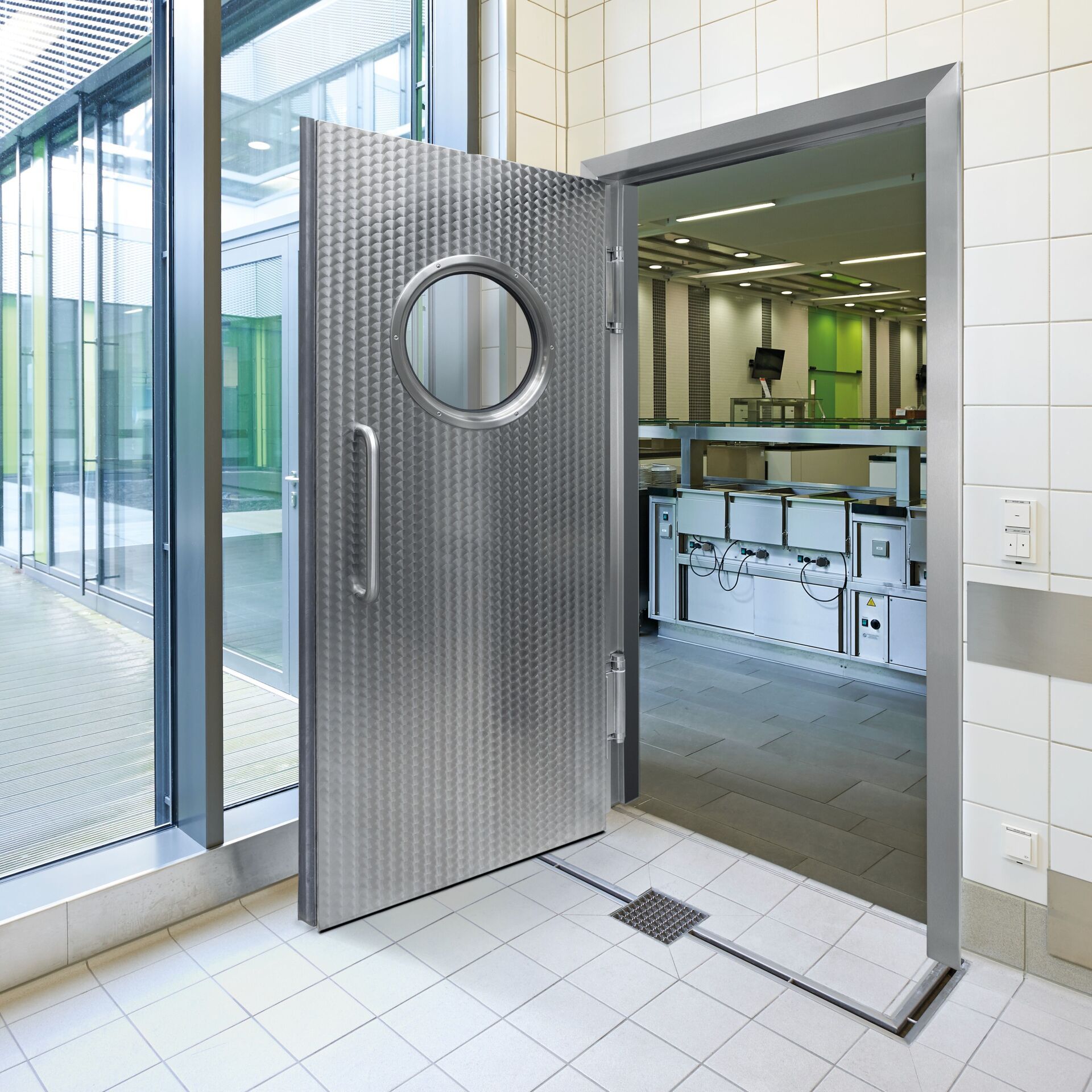 Les portes tertiaires en acier et acier inoxydable convainquent par une vue de porte aux éléments assortis en matière de fonctions et de combinaisons avec huisseries d'angle, tubulaires ou enveloppantes. Indépendamment de leurs fonctions, les portes de votre bâtiment présentent un aspect harmonieux et sont dotées de détails haut de gamme tels que la jonction affleurante des vantaux de porte pour les porte à deux vantaux ou la jonction affleurante vers l'imposte.
