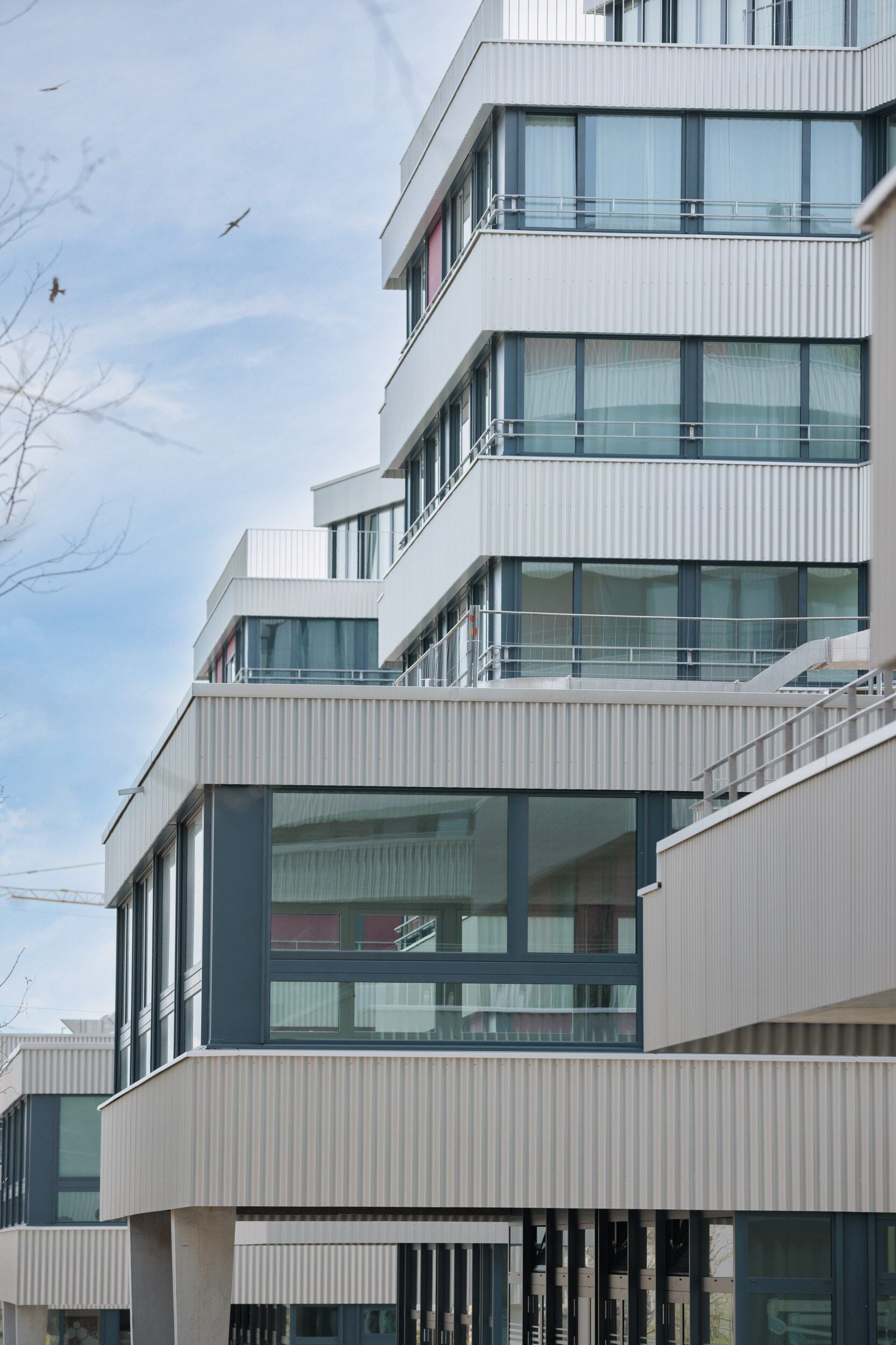 L’ensemble permet une densification tout en privilégiant un aménagement paysager qualitatif et généreux entre les immeubles. Il favorise une vie sociale riche grâce à la création d’un nouvel axe de mobilité douce et la présence de surfaces commerciales. L’intégration réussie avec la zone naturelle située à proximité assurera par ailleurs aux habitants des Lisières un cadre verdoyant.