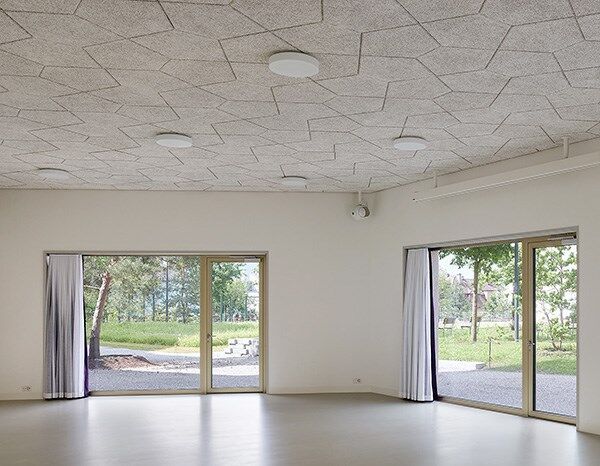 Les panneaux acoustiques en laine de bois utilisés dans le cadre du projet Buchegg sont fait de bois, de ciment blanc ou gris et d’eau. Ils sont exempts de polluants et d'allergènes et ont été examinés au niveau de leur durabilité. Les propriétés de la laine de bois permettent la régulation de l'humidité et une excellente absorption acoustique, ce qui crée un climat ambiant agréable. En outre, la diversité des textures, de formats, de couleurs, d’accessoires et de types d'installation garantit un large éventail d'applications ainsi qu'une grande diversité en matière de conception.