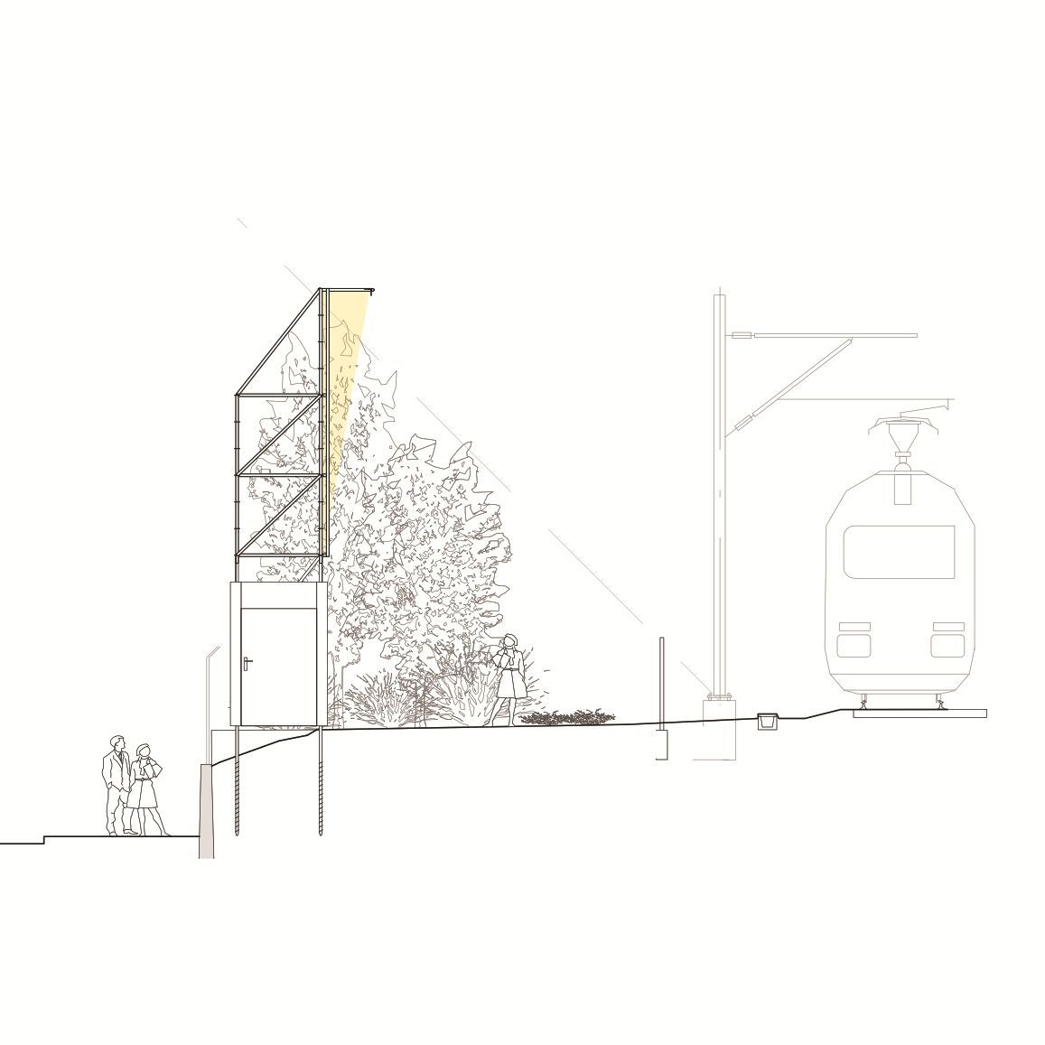 On aperçoit BILLBOARD de loin, et particulièrement bien depuis le Negrellisteg, la passerelle piétonne qui relie depuis 2021 les Kreis 4 et 5. Deux mondes se rencontrent à ce carrefour urbain: au sud, l’Europaallee et ses commerces, et au nord, le quartier animé de la Zollstrasse dont le visage a beaucoup changé depuis la construction de la Zollhaus par la coopérative Kalkbreite (voir Arc Mag 2022–3, p. 90–101). De petites enseignes, le Forum d’architecture de Zurich, un glacier, une scène de Stand-Up et quelques restaurants se sont installés sur ce nouvel axe de flânerie le long duquel se dessine une forme de spontanéité organisée. Une atmosphère urbaine oscillant entre ouverture et contrôle, à l’image de Zurich lorsqu’elle se montre sous son meilleur jour: une architecture en phase avec ce qui est à venir, expérimentale et volontairement à l’écoute de la société.