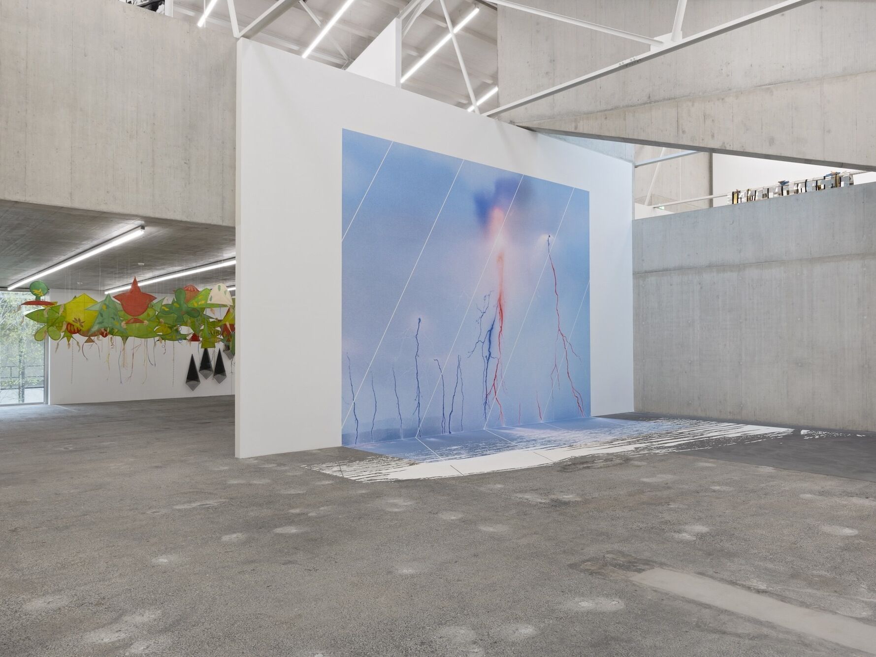 Des tours de lumière prismatiques, placées dans la structure métallique existante de l'ancien entrepôt, sont des points d'ancrage dans une matrice spatiale qui structure l'espace d'exposition. | Photo: Maris Mezulis