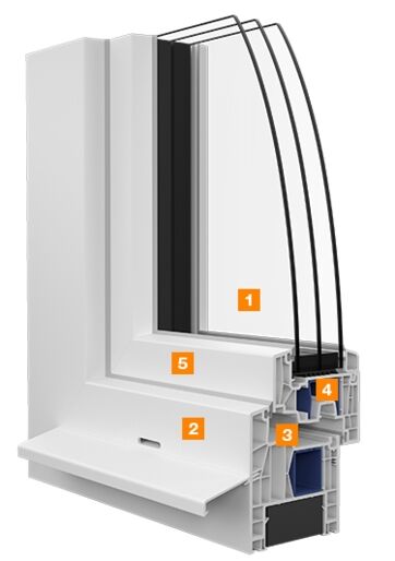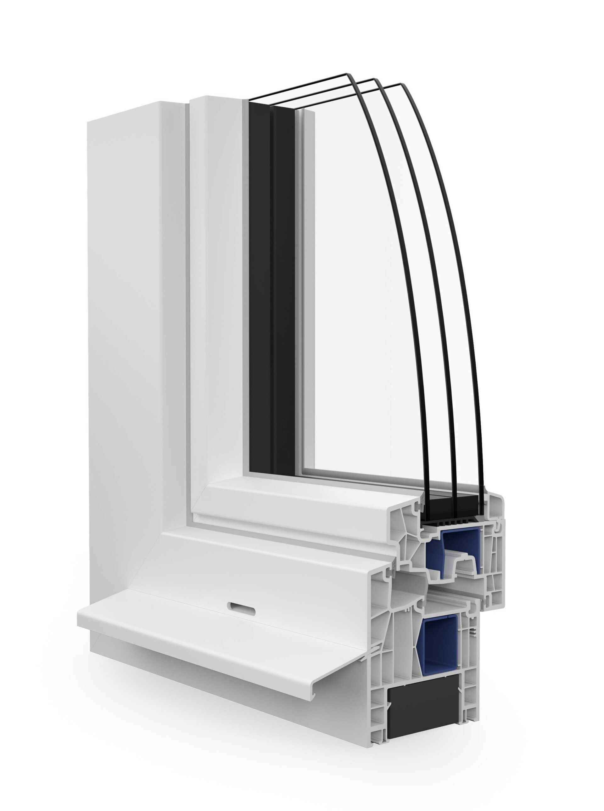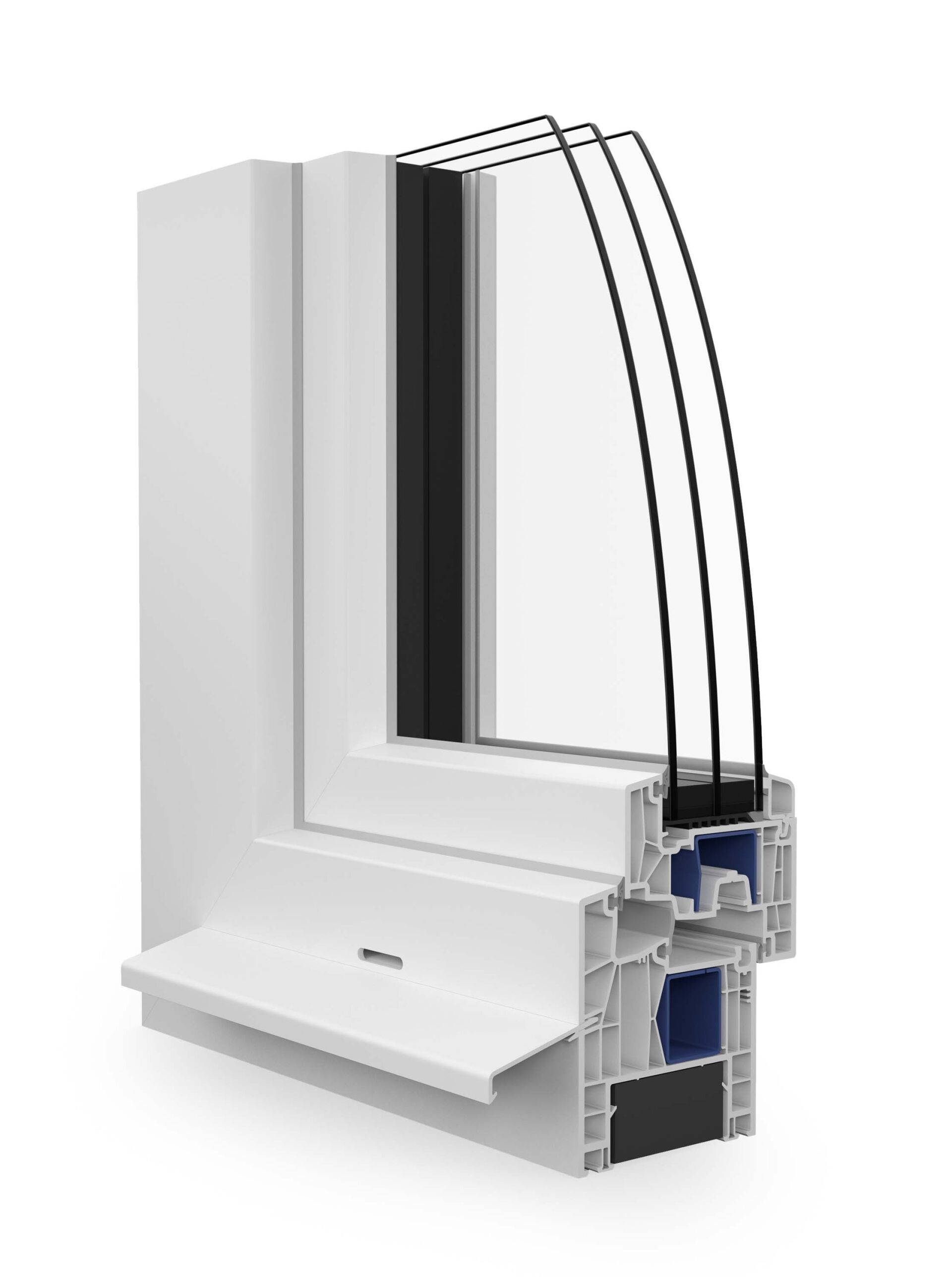 1. La technologie au plus haut niveau Avec une épaisseur de 88 mm et un joint central intégré, ce système atteint d'excellents coefficients Uf. Associé à des vitrages fonctionnels ultramodernes, il répond aux exigences les plus élevées en matière d'efficacité énergétique, d'isolation phonique et de sécurité anti-effraction. | 4. Plus de rigidité et de stabilité De grands renforts en acier ainsi qu’une technique de collage spéciale liant le verre isolant au vantail renforcent la stabilité et la rigidité de la fenêtre. |